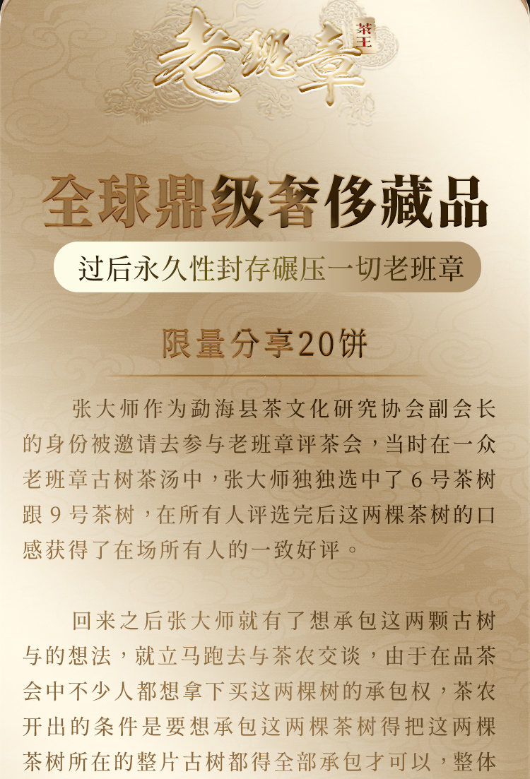 【老班章茶王】有正规编号的古树 市面未有的绝版茶 2017年春茶 7年陈勐海茶区老班章6号9号古树普洱茶生茶饼357g