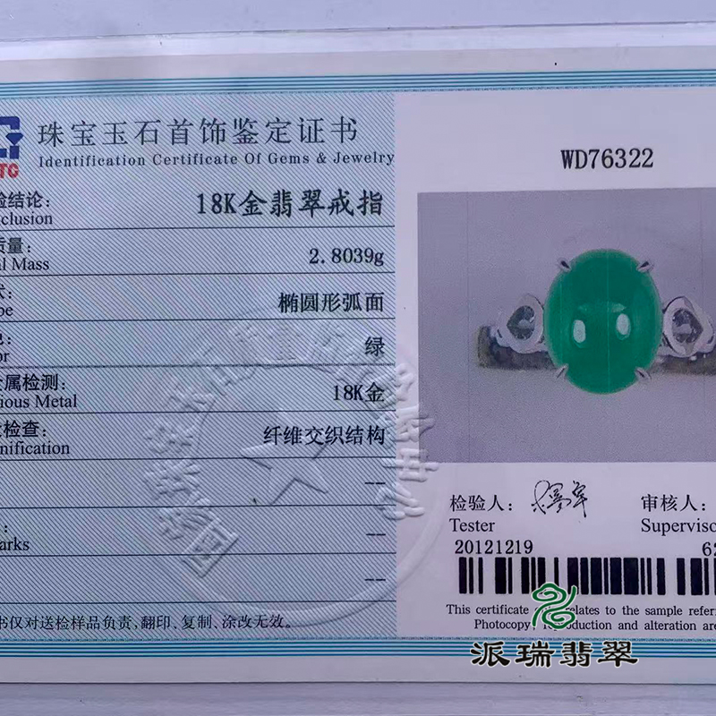 派瑞翡翠 18k金翡翠吊坠 冰种 满绿