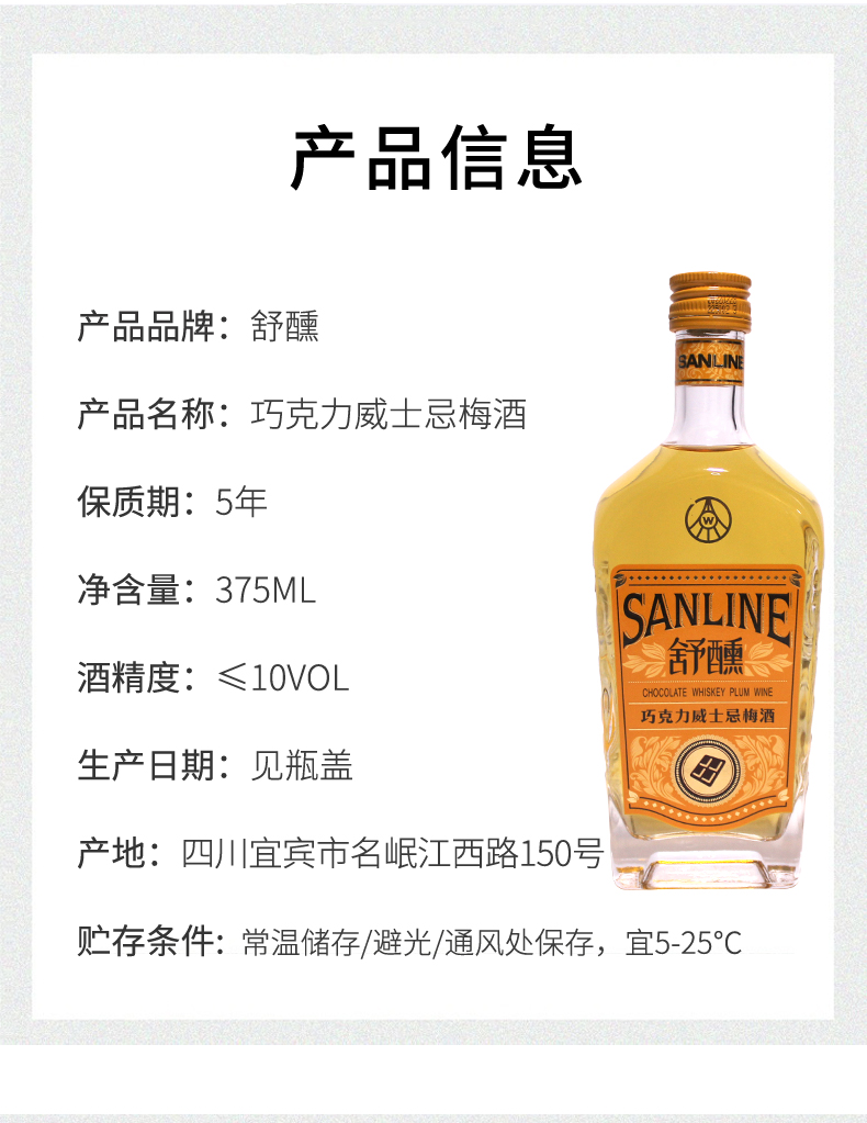 舒醺牌巧克力威士忌青梅酒(配制型) 10度 375mL*1瓶