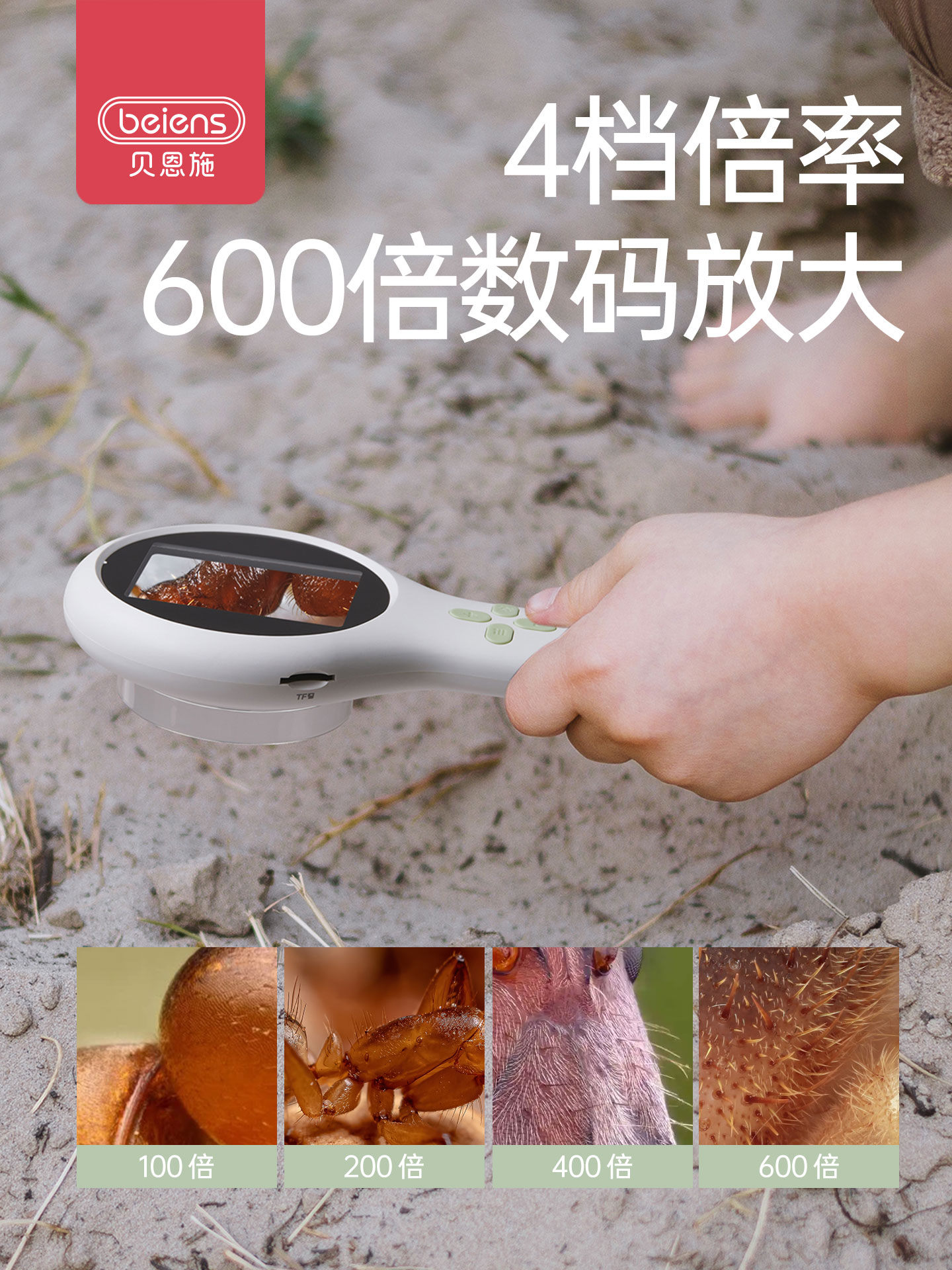贝恩施儿童显微镜放大镜高清便携式手持科学实验套装中小学生专用