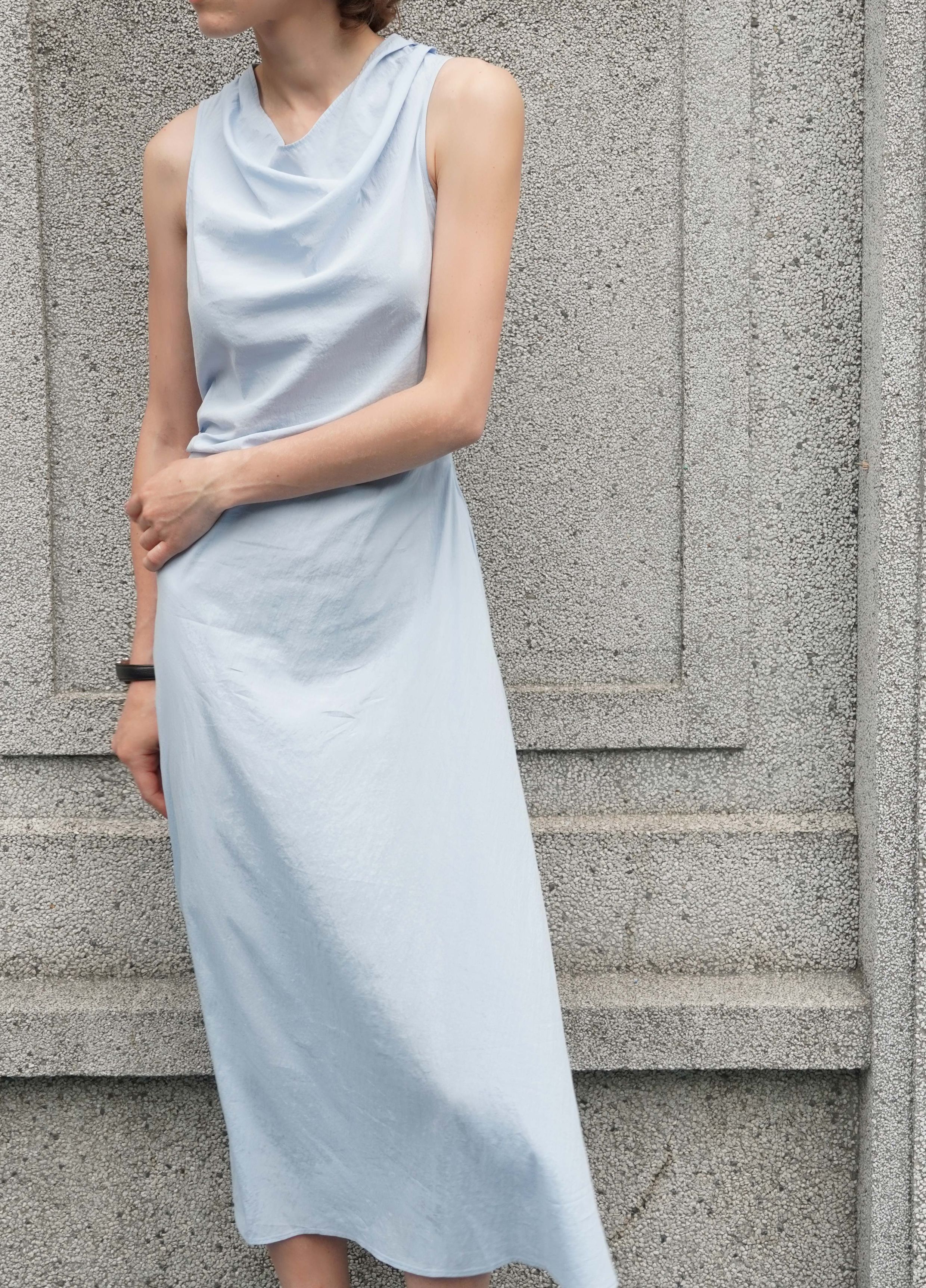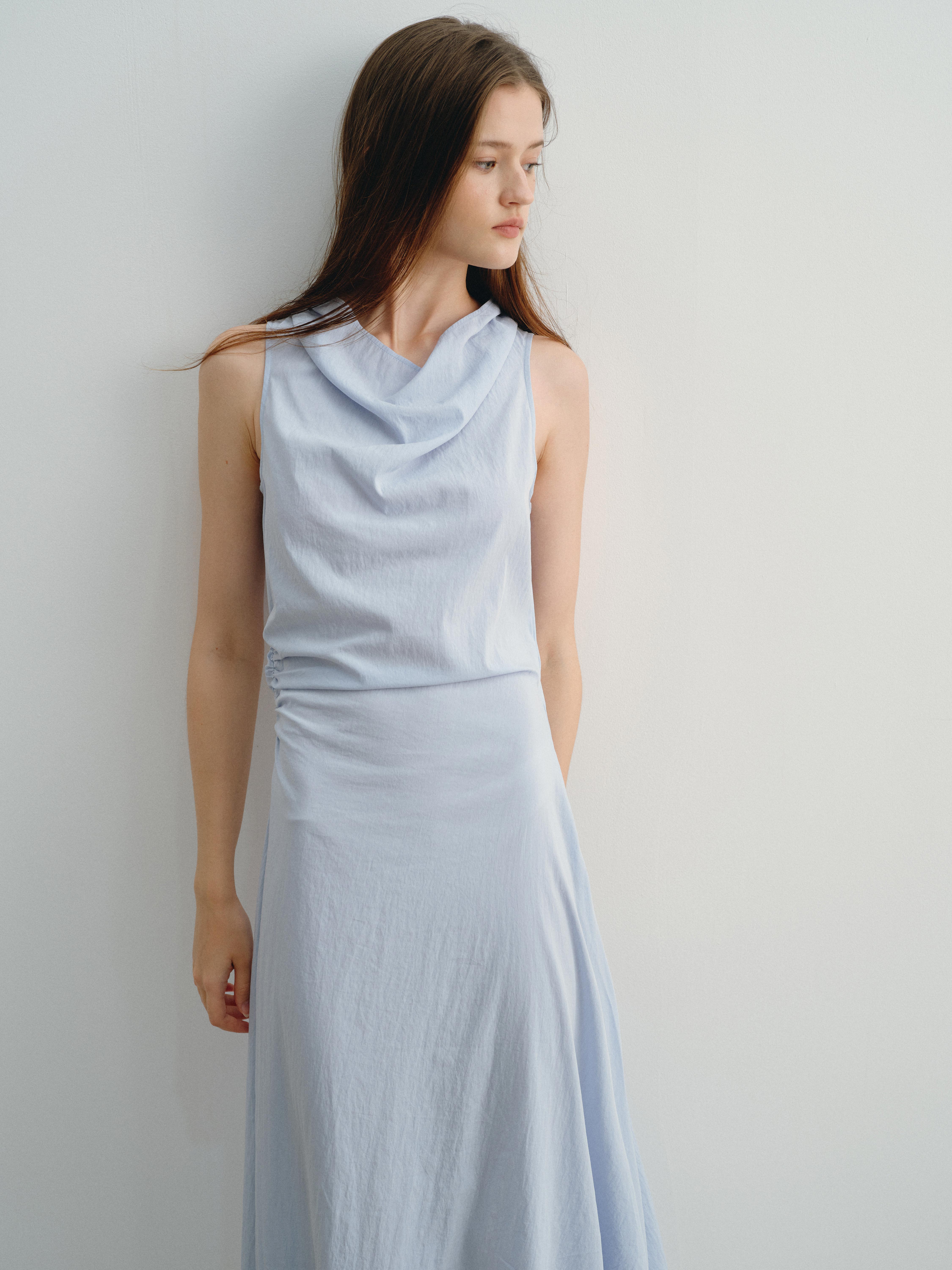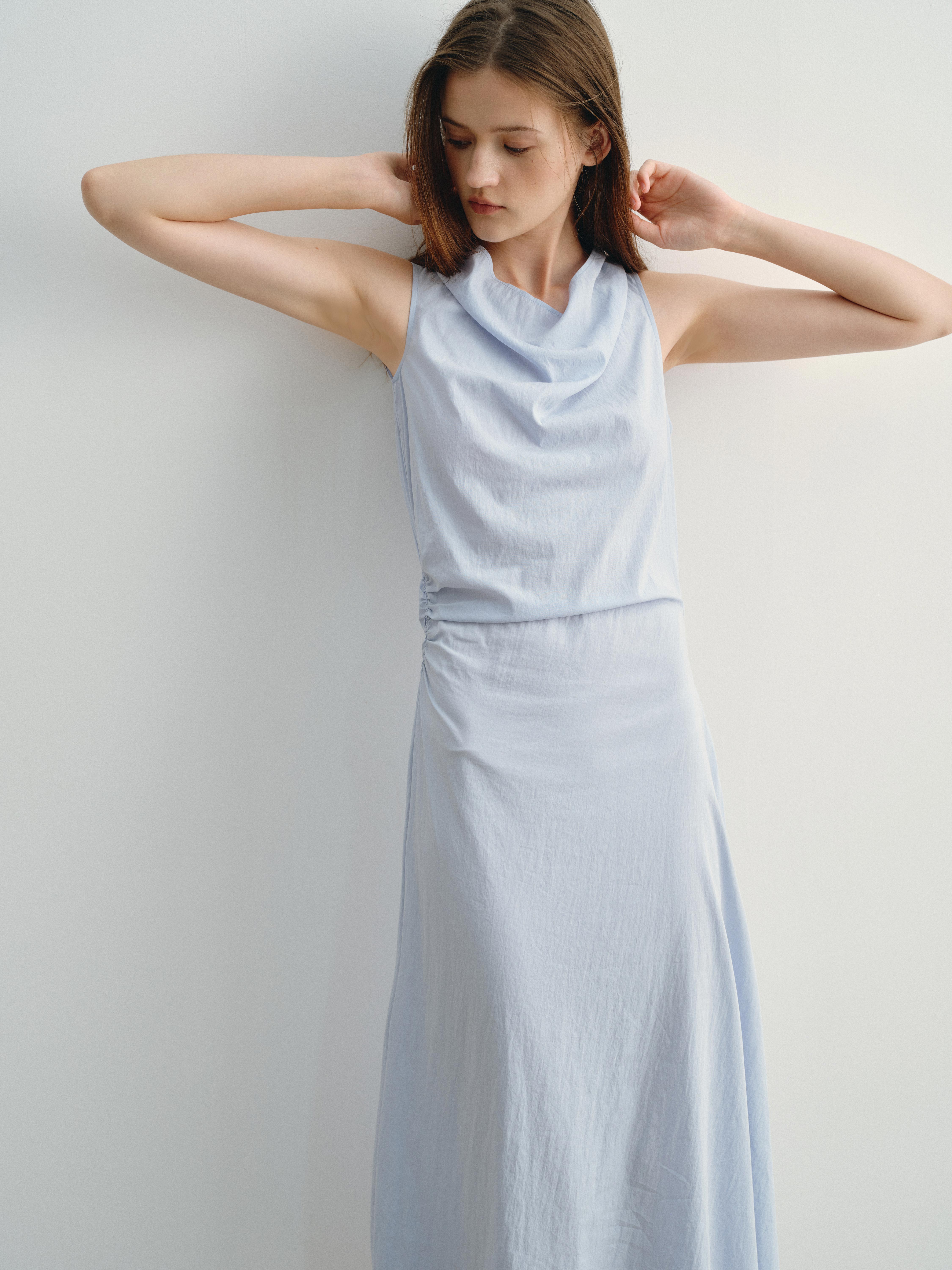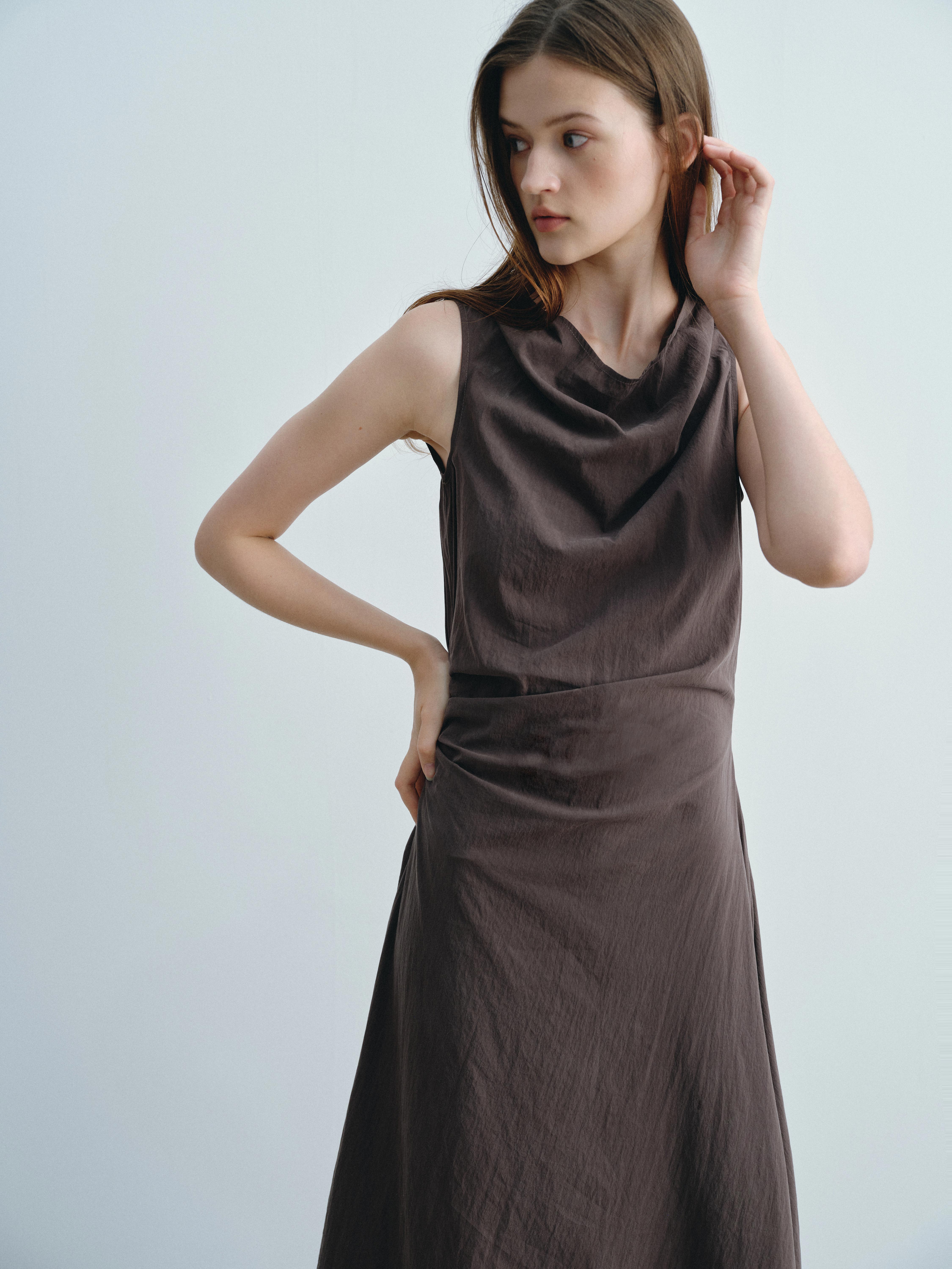 shyshystill/shy202404047/天丝轻盈空气感荡领无袖两色捏褶收腰连衣裙