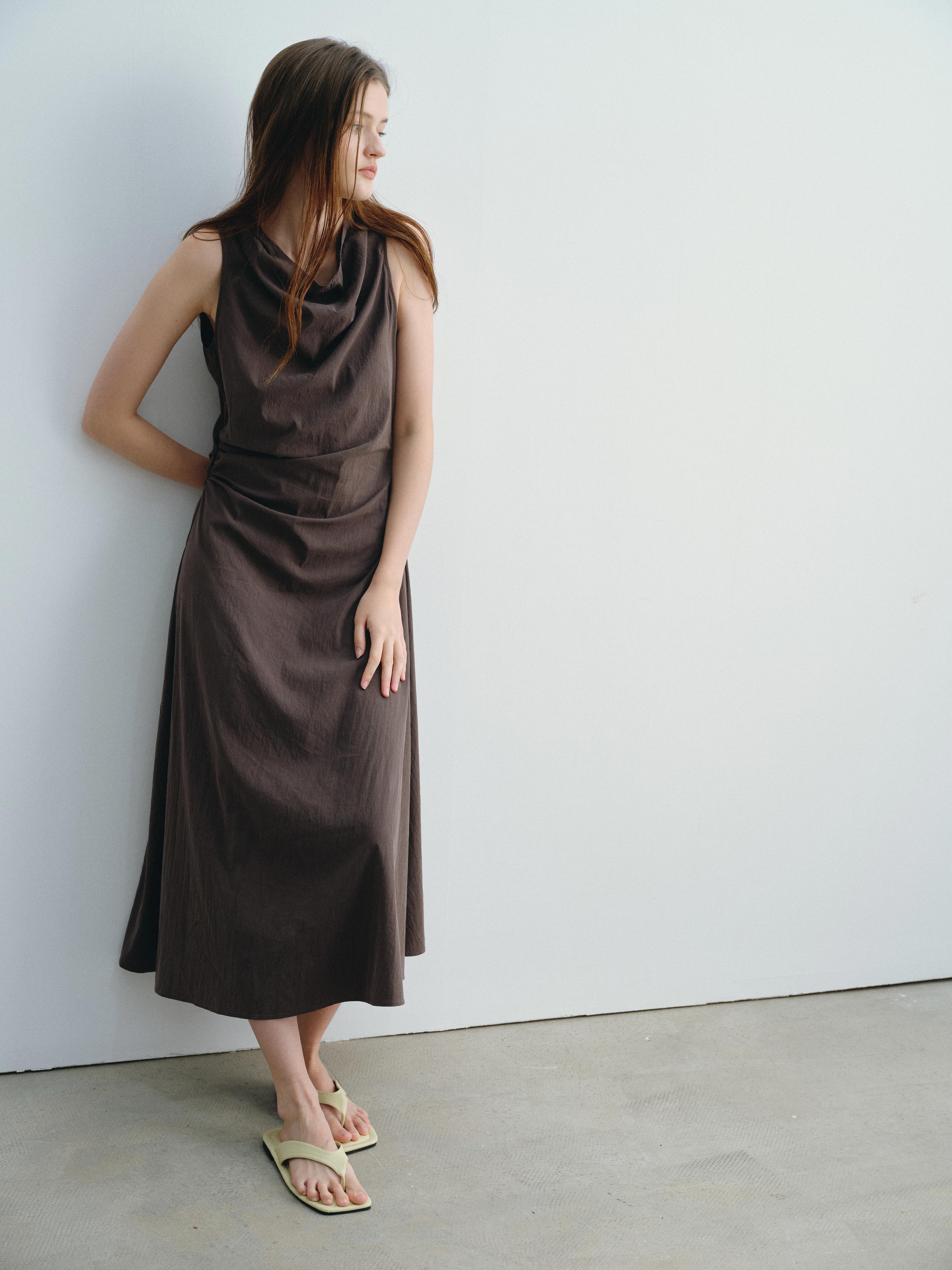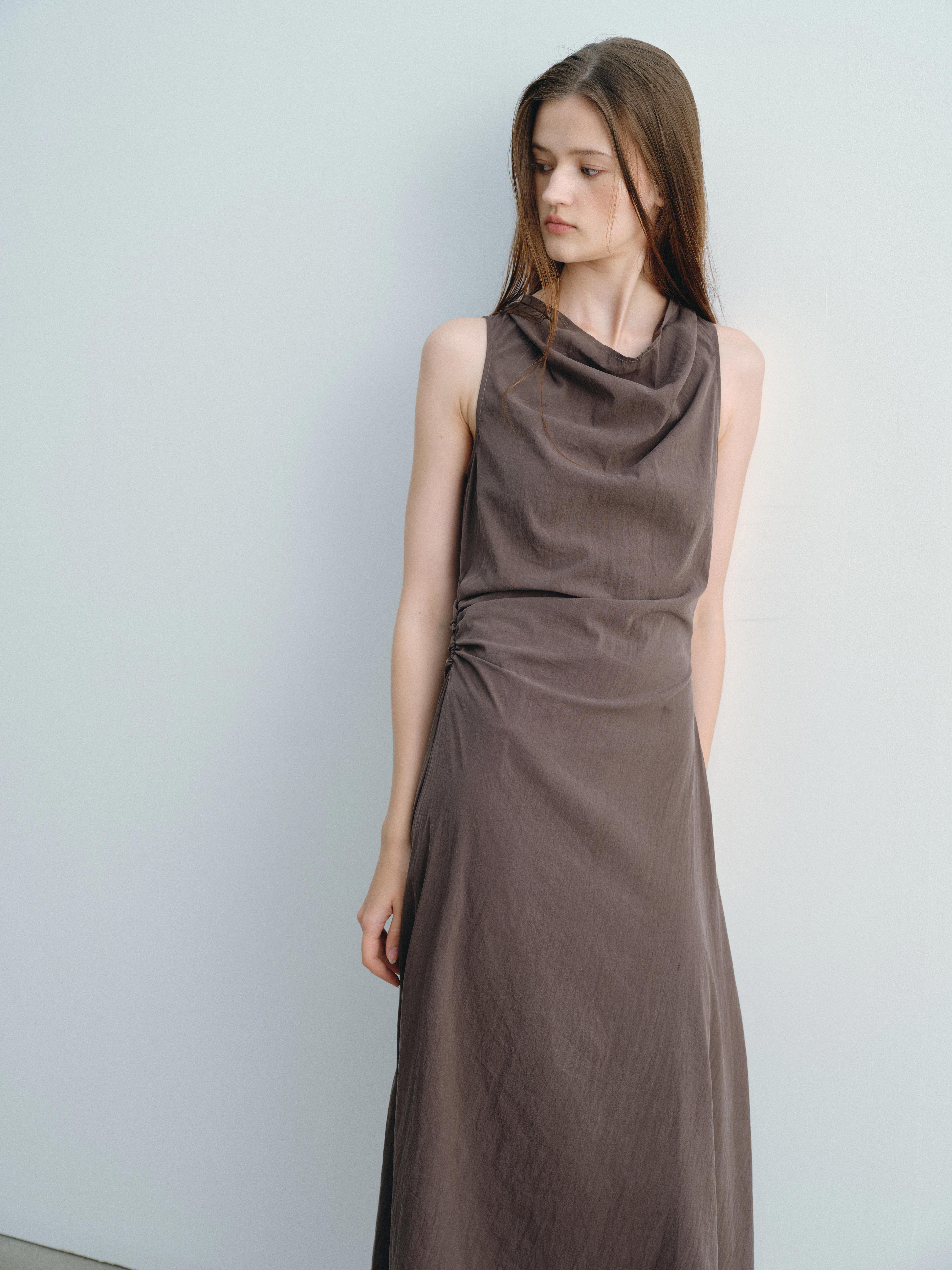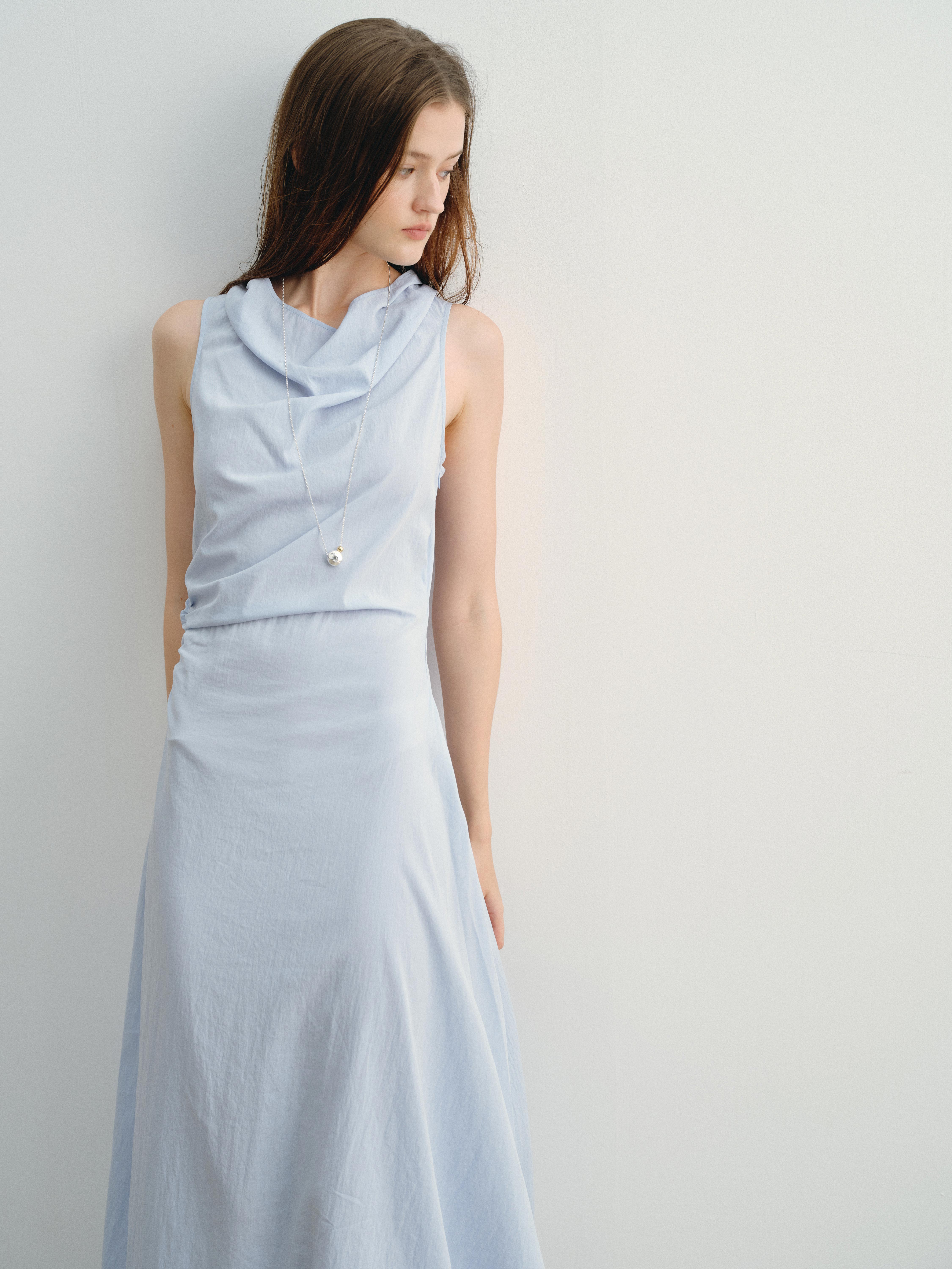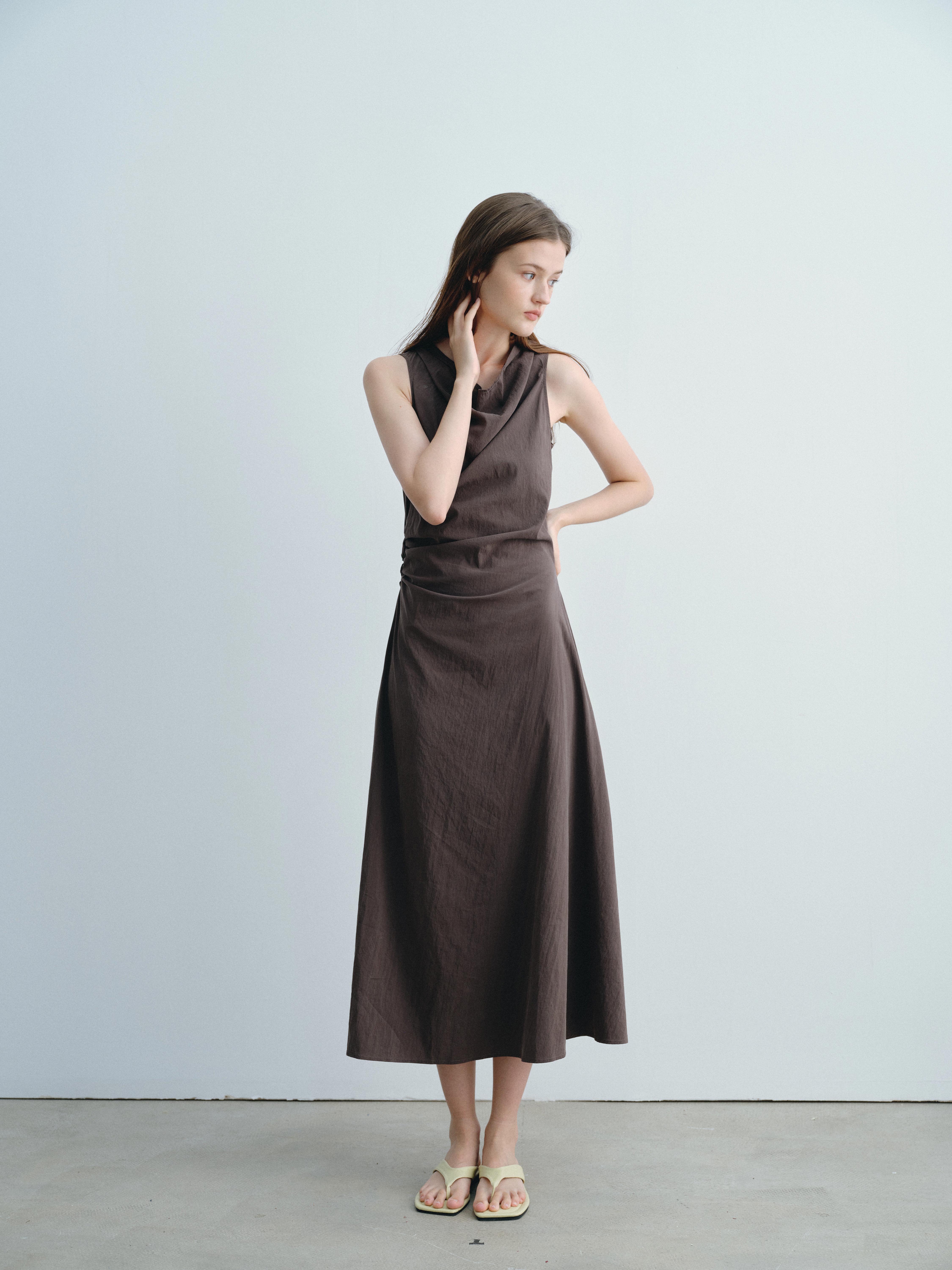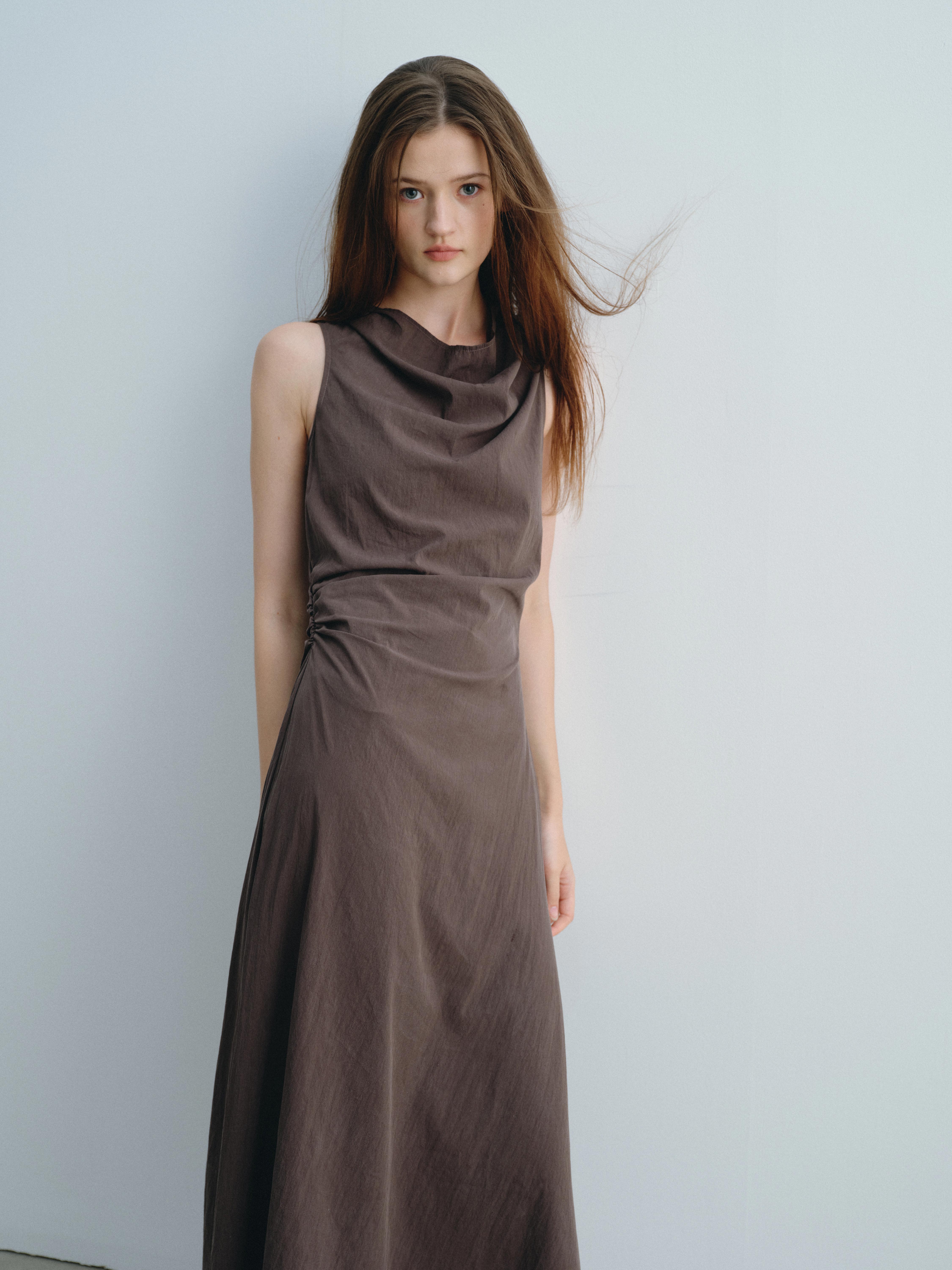 shyshystill/shy202404047/天丝轻盈空气感荡领无袖两色捏褶收腰连衣裙