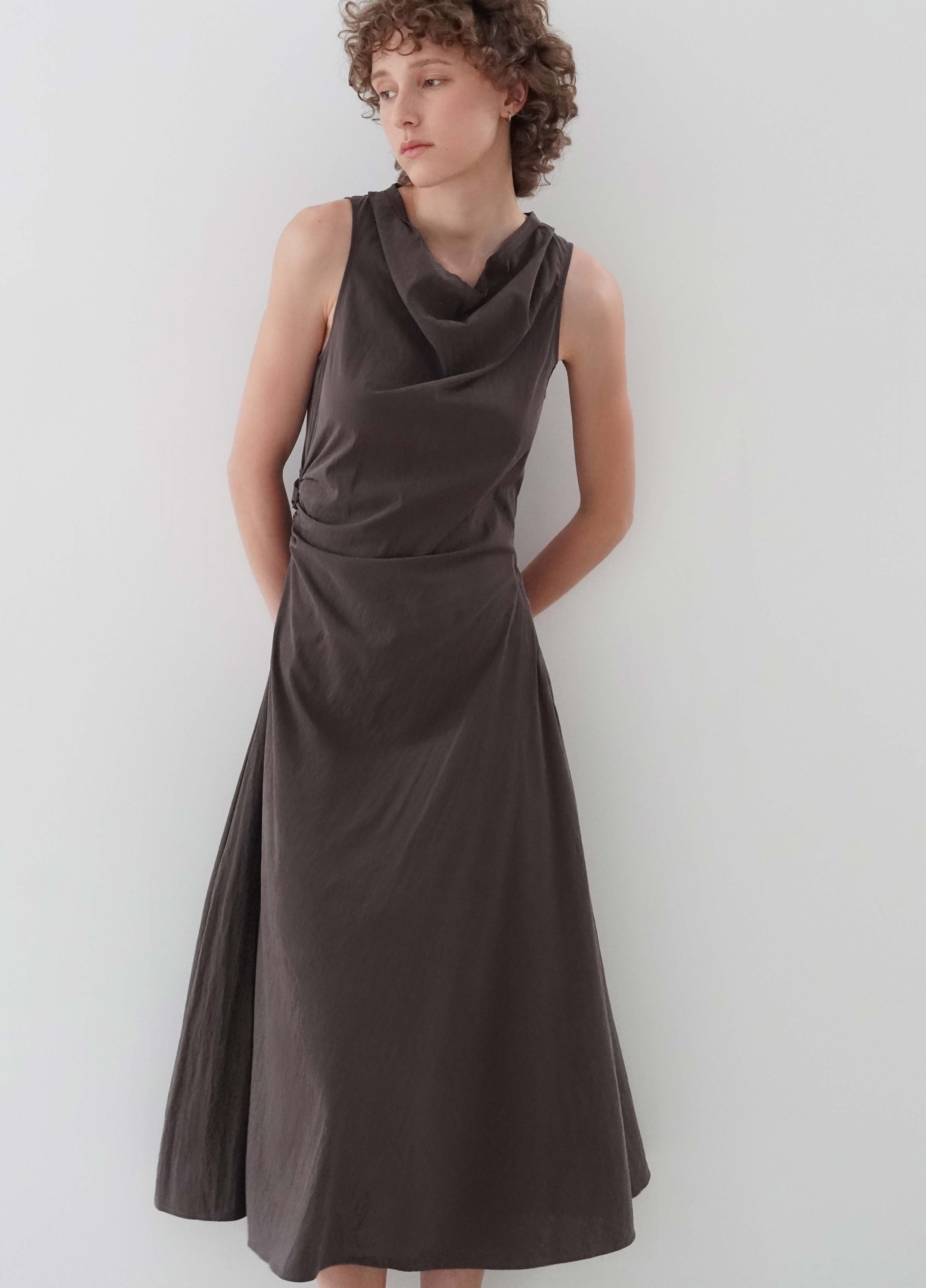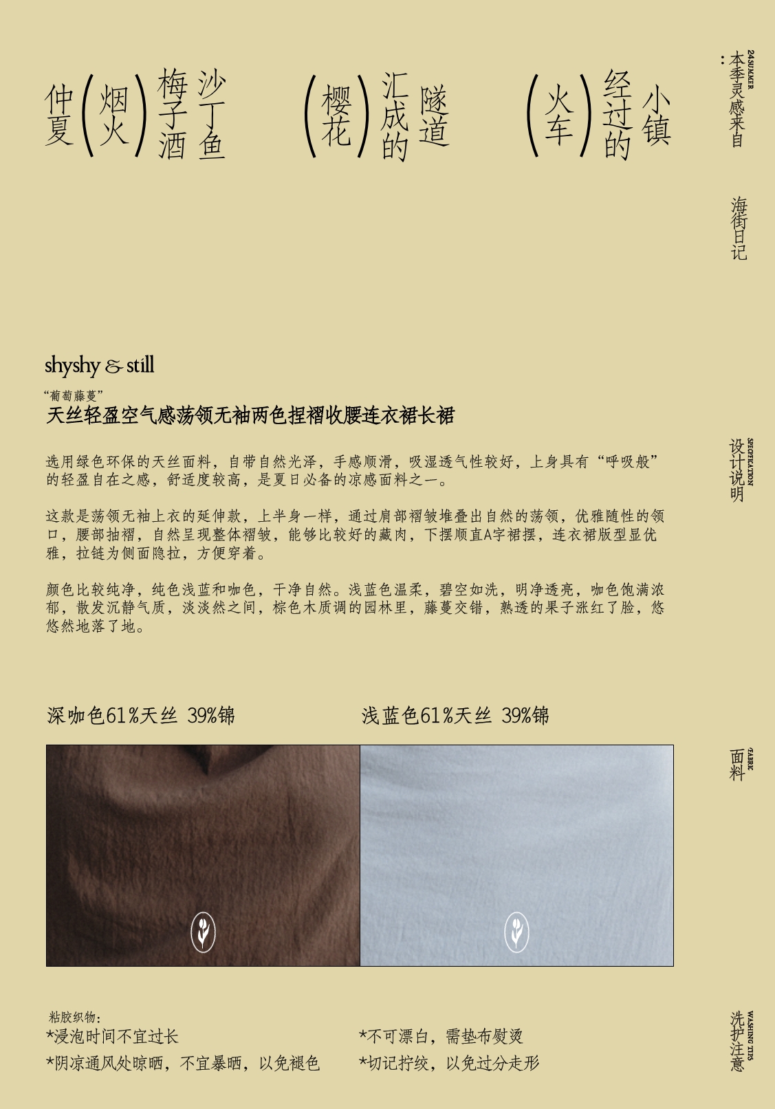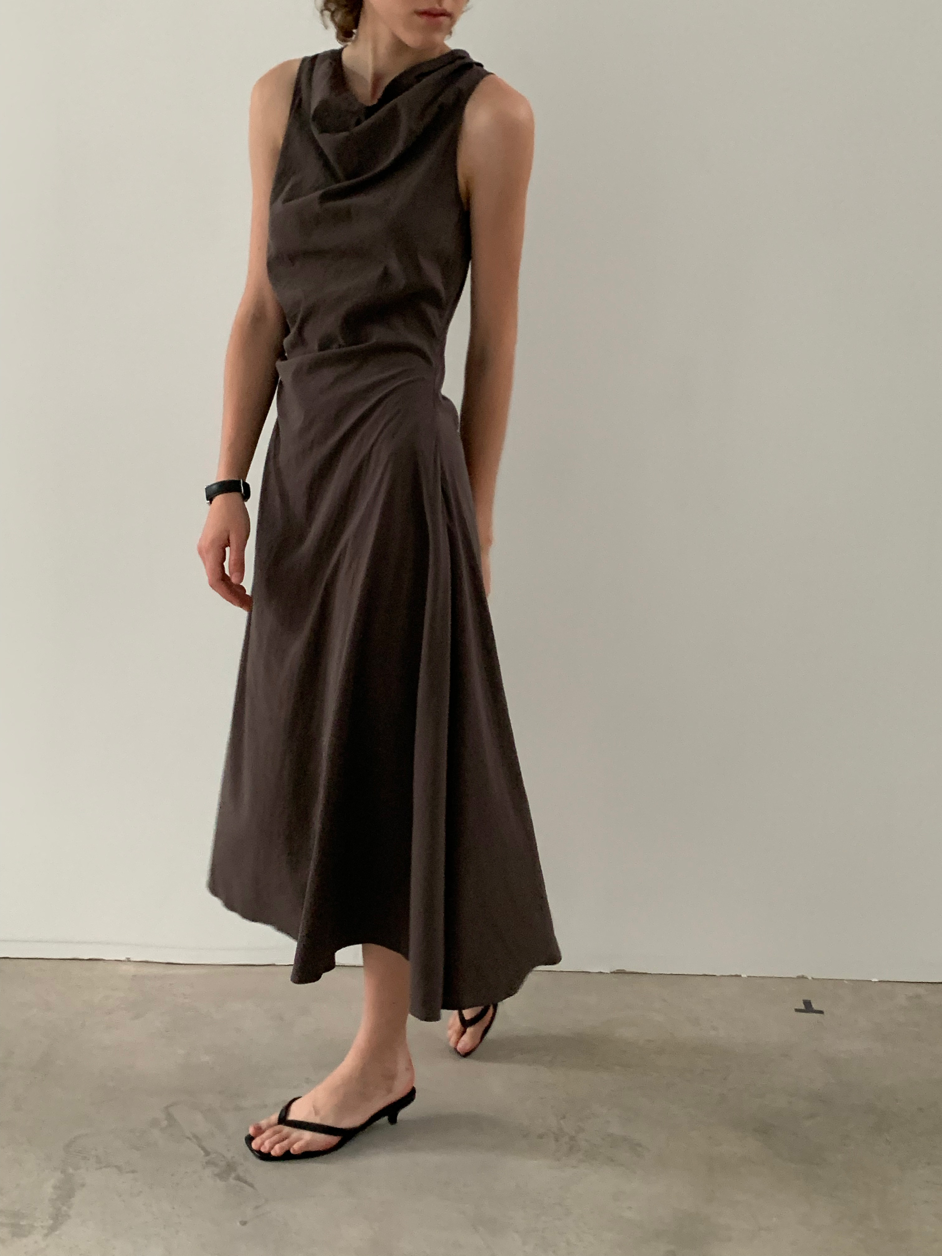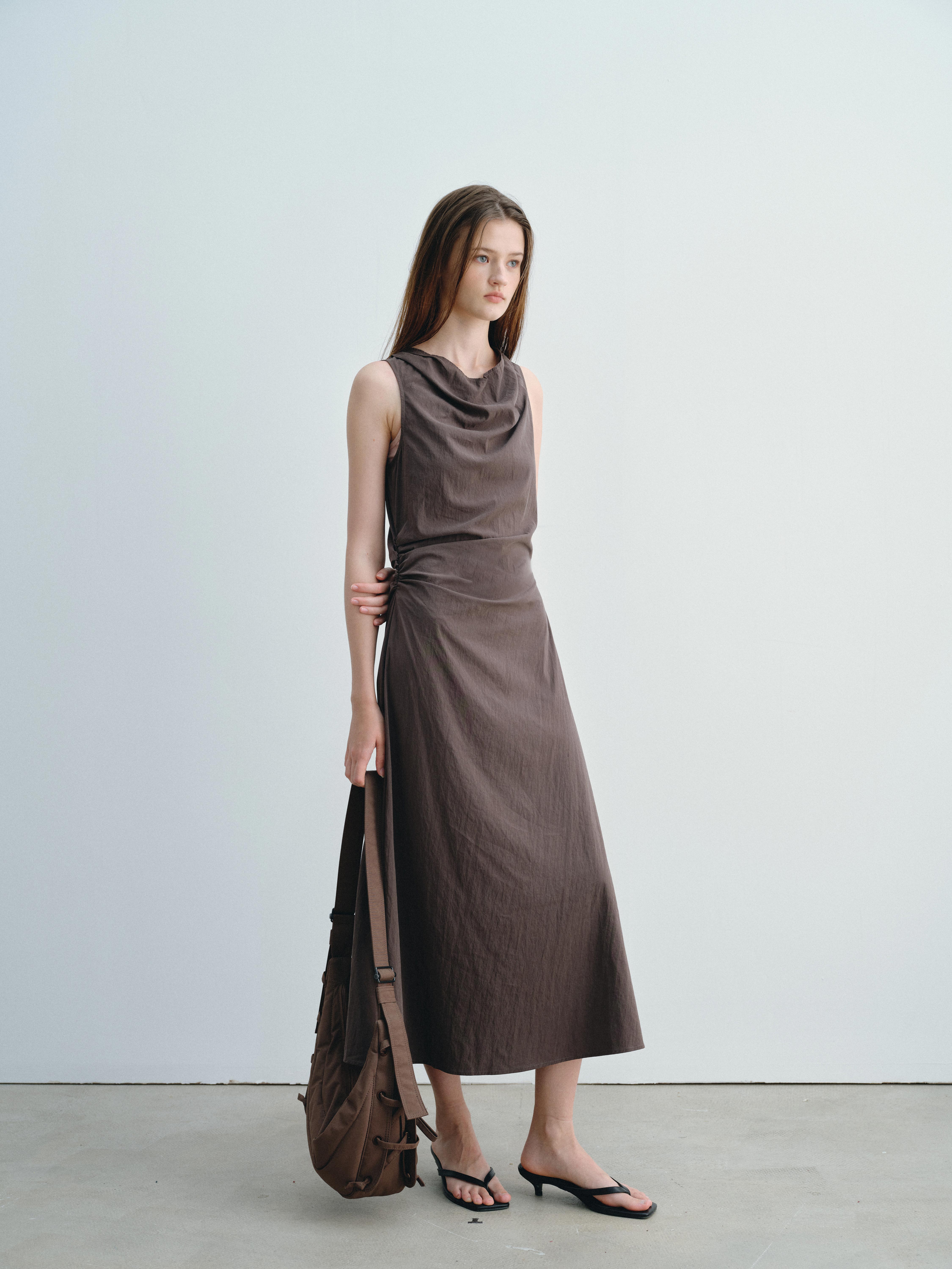 shyshystill/shy202404047/天丝轻盈空气感荡领无袖两色捏褶收腰连衣裙