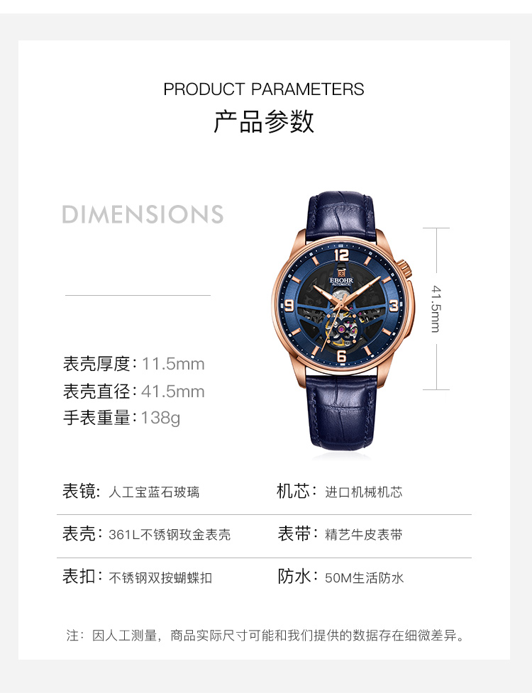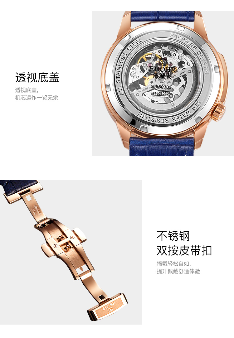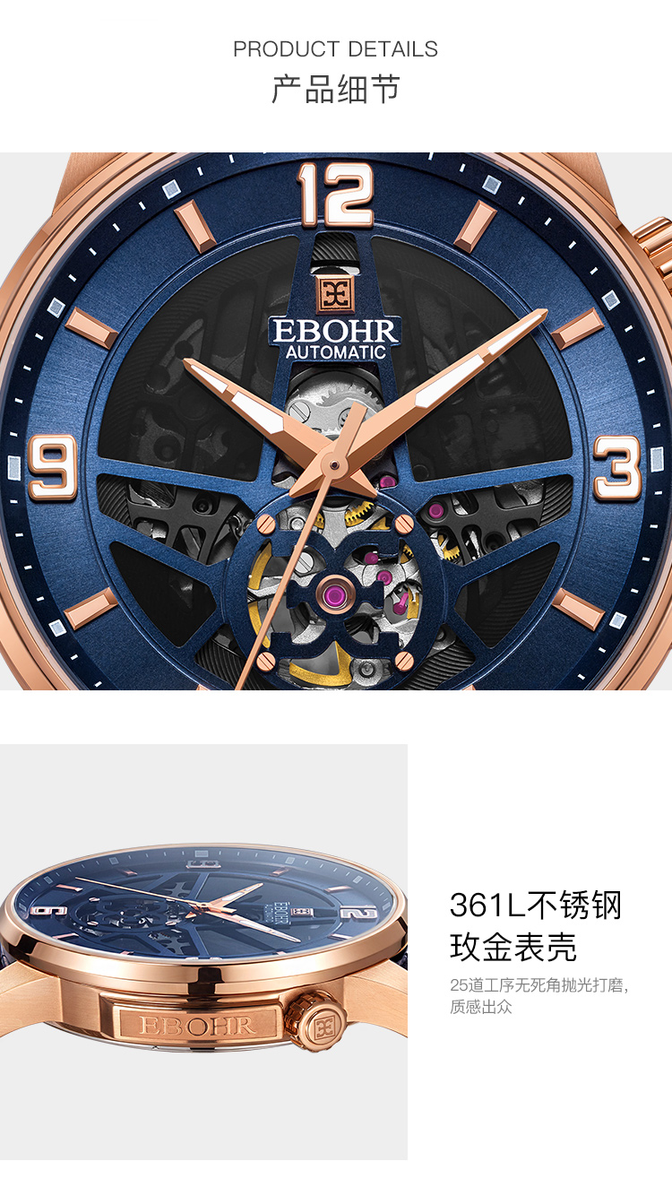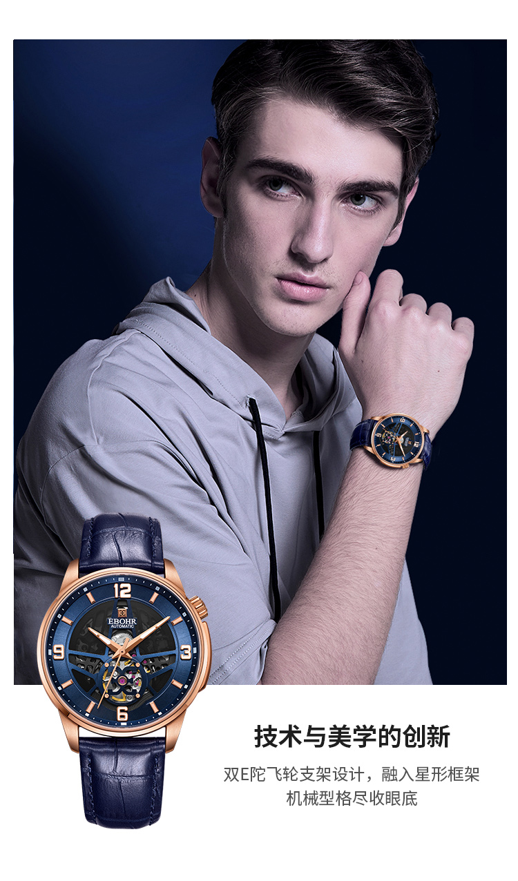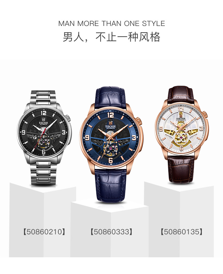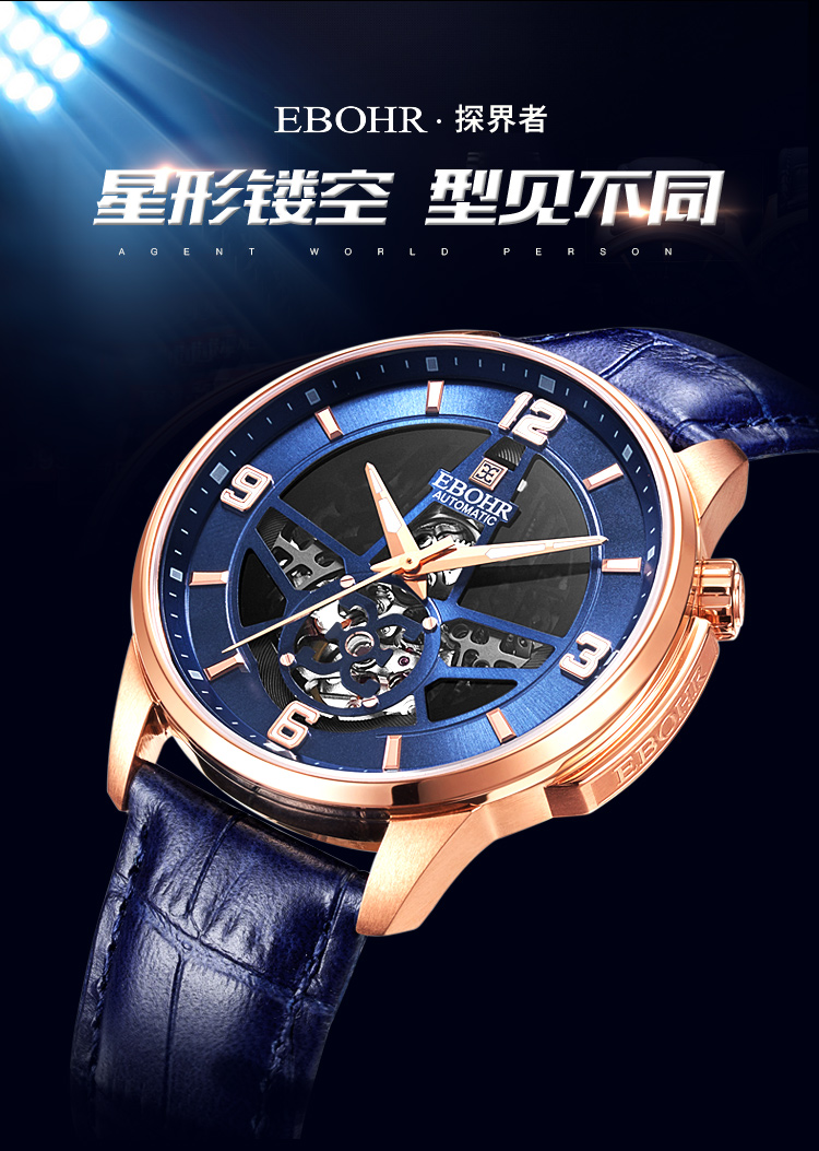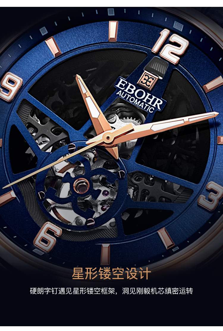 依波表 EBOHR 探索者系列时尚潮流星形镂空全自动机械男士腕表5086