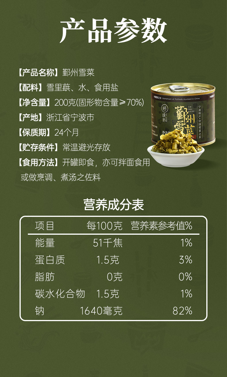 鄞州雪菜下饭菜咸菜酱腌菜罐装雪里蕻榨菜鲜嫩脆爽酸菜雪菜