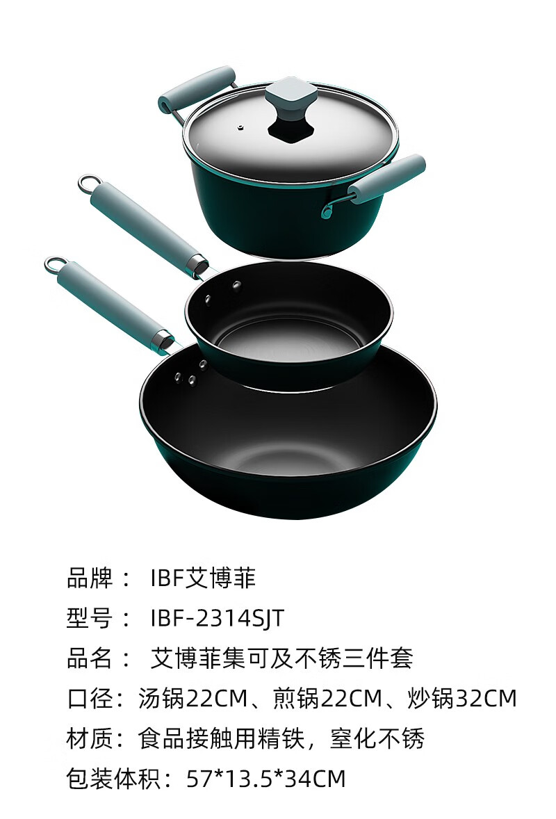 IBF艾博菲艾博菲IBF艾博菲极可及真不锈三件套炒汤煎锅具套装【K】