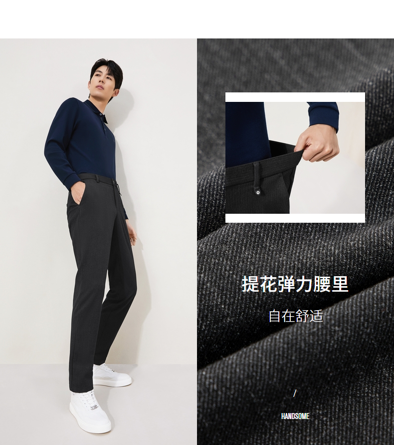 【抗皱易打理】柒牌休闲裤男士中腰直筒裤子秋季新款商务修身长裤129H73010