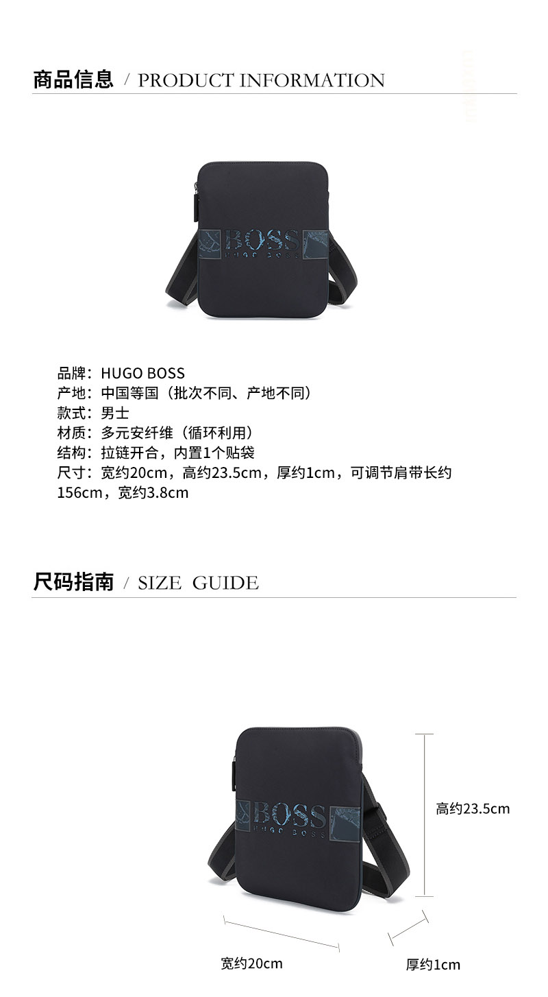 【国内现货】HUGO BOSS/雨果博斯 2021款 男士其它多元安纤维(循环利用)单肩斜挎包信封包 50454196
