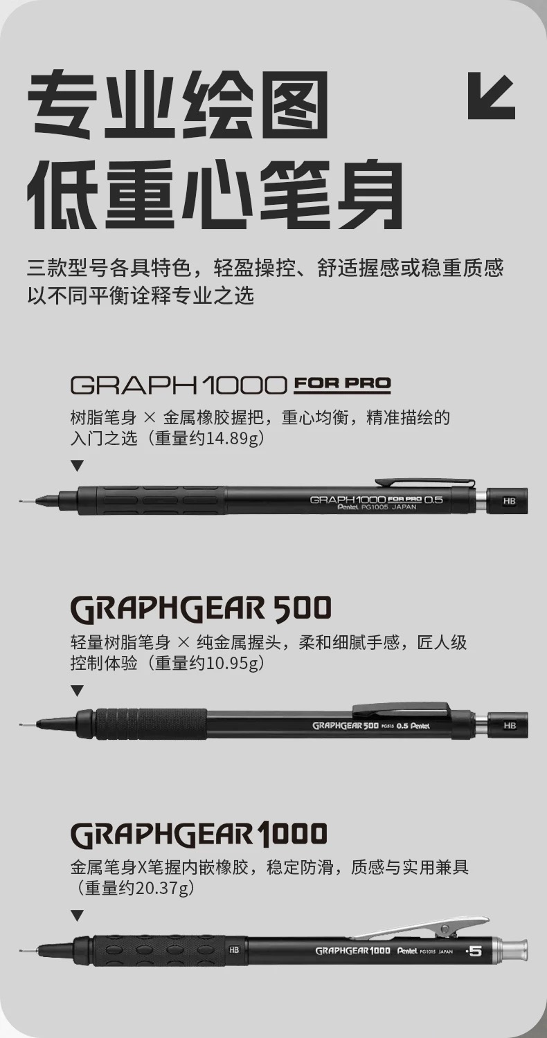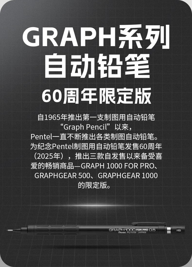 日本Pentel派通60th周年限定自动铅笔0.5mm金属制图GRAPH套装
