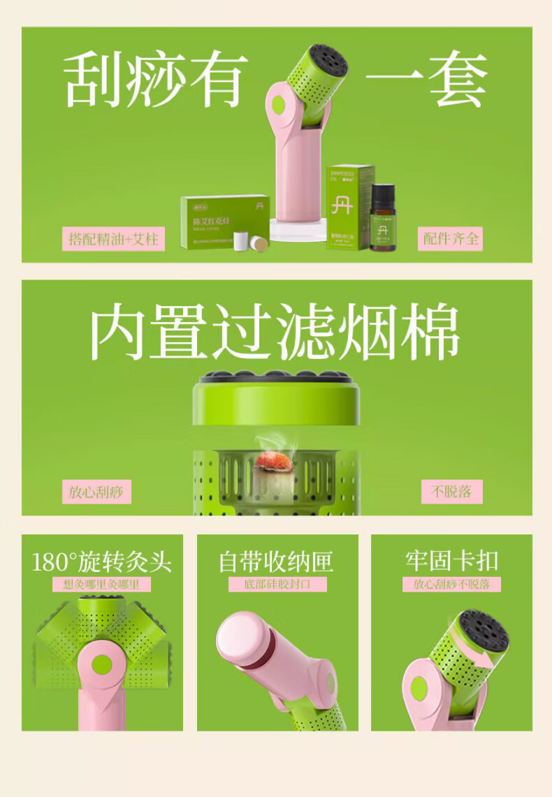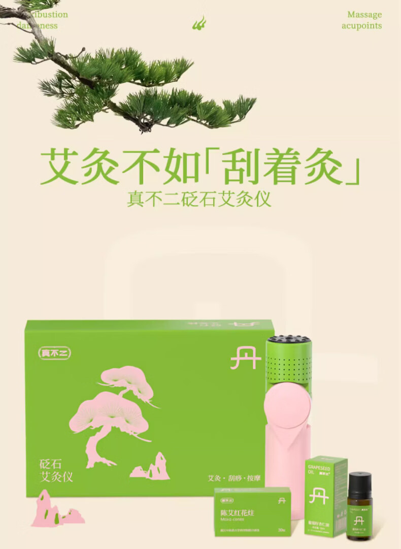【真不二刮灸套盒 】古法明火艾灸 天然泗滨砭石 一分钟无痛出痧 边灸边刮痧 一泄一补