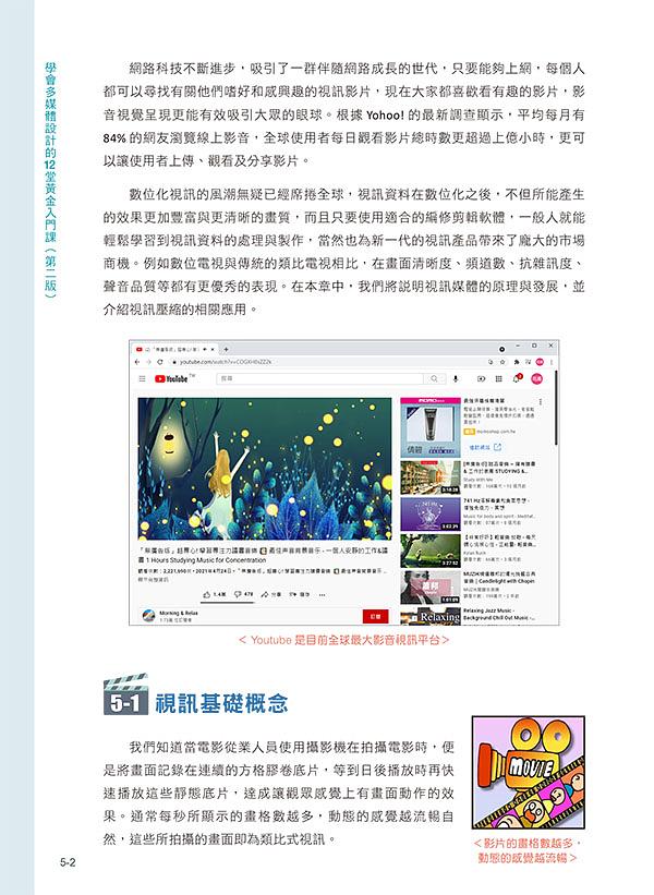 本書除了多媒體的各項知識外,也強調軟體實作,並以多樣化的範例來進行講解,提升讀者對多媒體創作的興趣,同時引導讀者將所學會的相關技巧,應用到生活化的創作之中。書中也加入了豐富圖片及示意圖,透過示意圖或表格的整理,更容易理解書中傳達的知識。