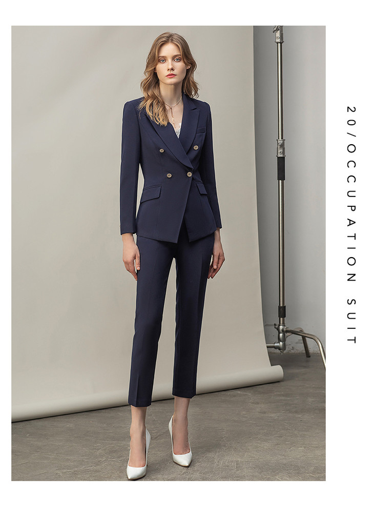 IWY/藏青色正装女套装微喇裤高级西装经理气质时尚讲师职业工作服