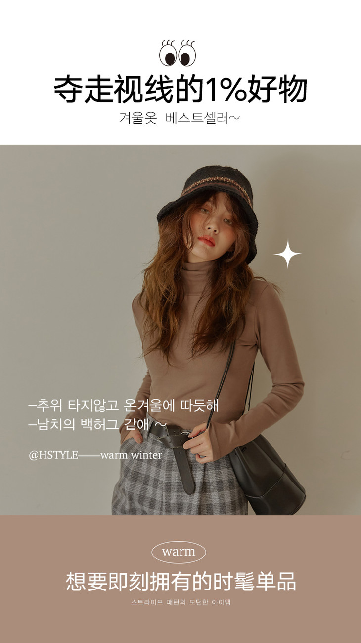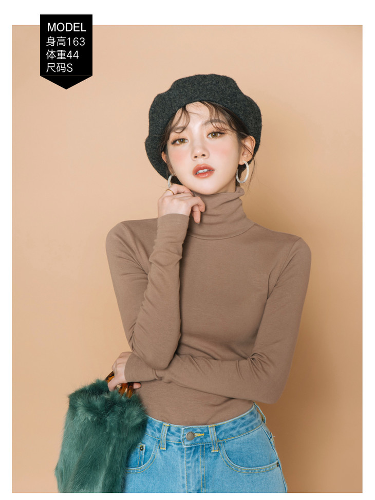 韩都衣舍高领打底衫春新款2021女装针织高瘦上衣高身毛衣JM9106