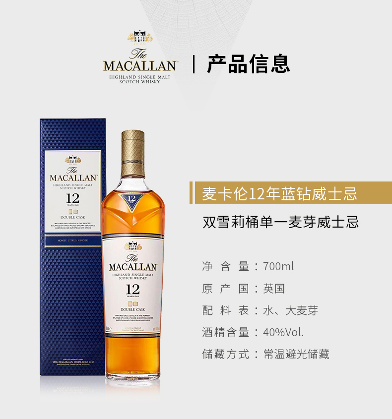 麦卡伦蓝钻12年单一麦芽苏格兰威士忌