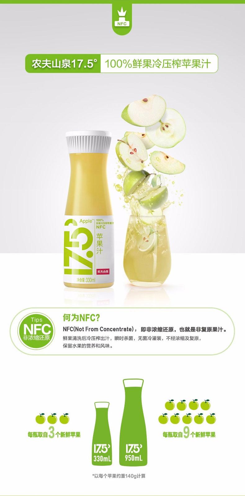 农夫山泉 17.5°NFC 苹果汁 330ml*6瓶