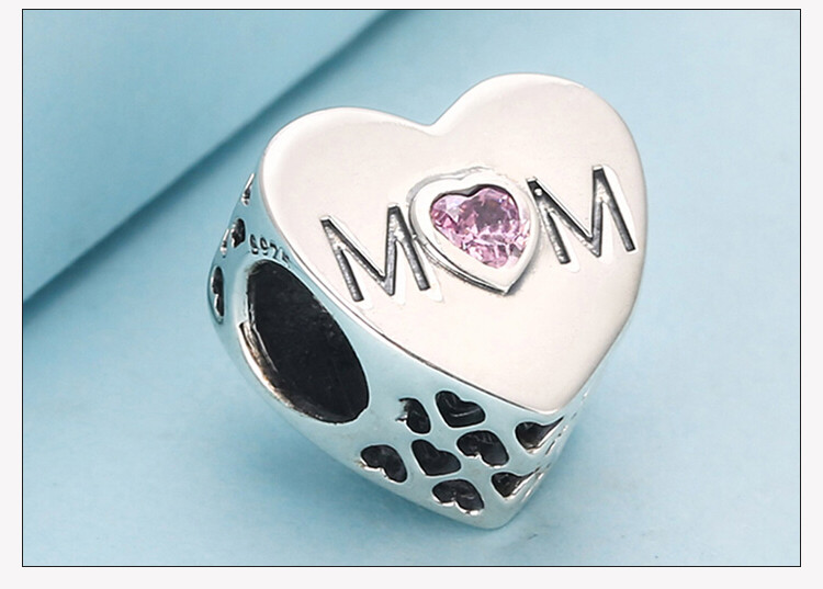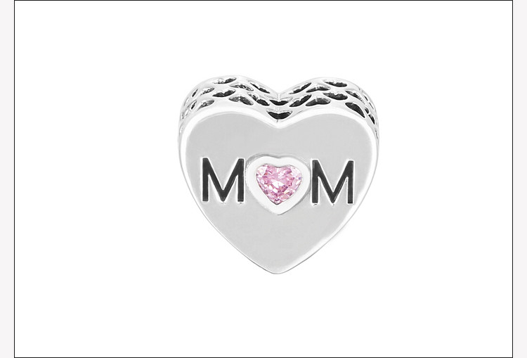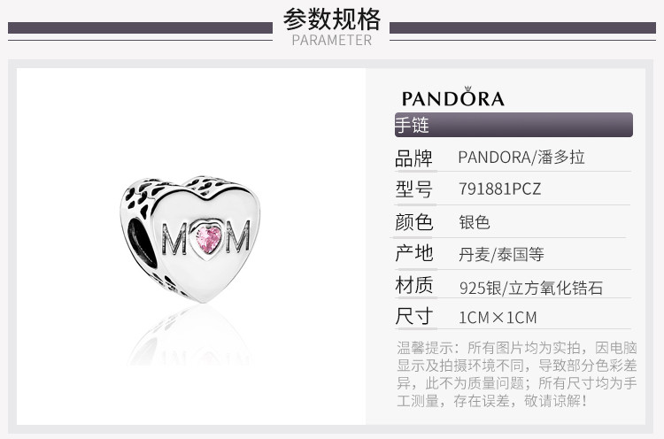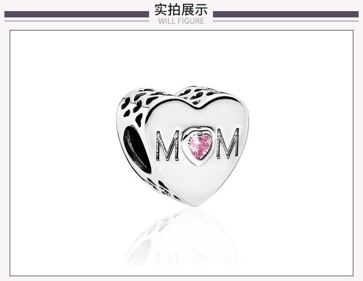 PANDORA/潘多拉 时尚粉色母亲的心镂空纹理串珠 791881PCZ 银色
