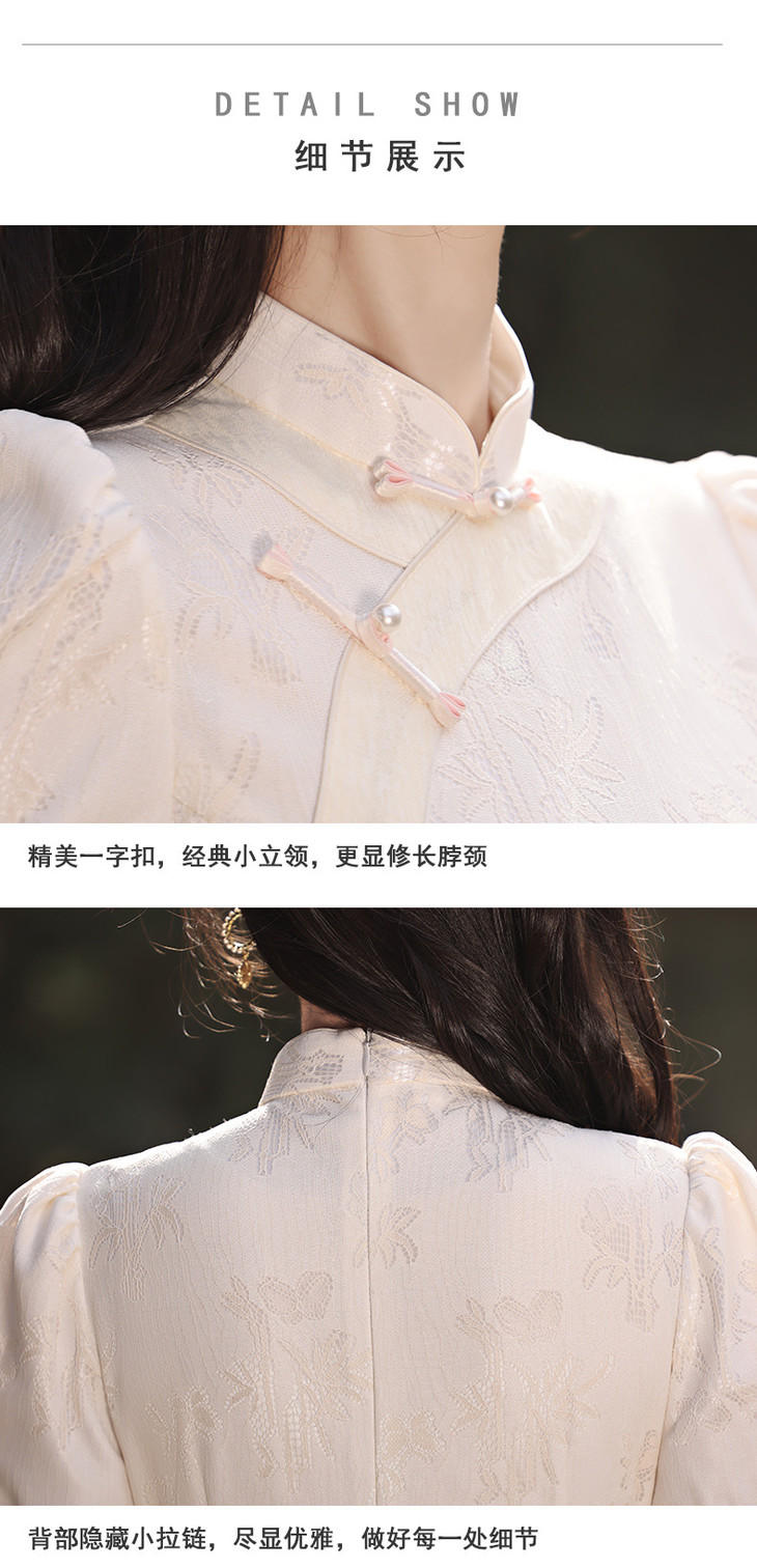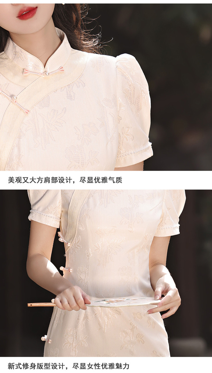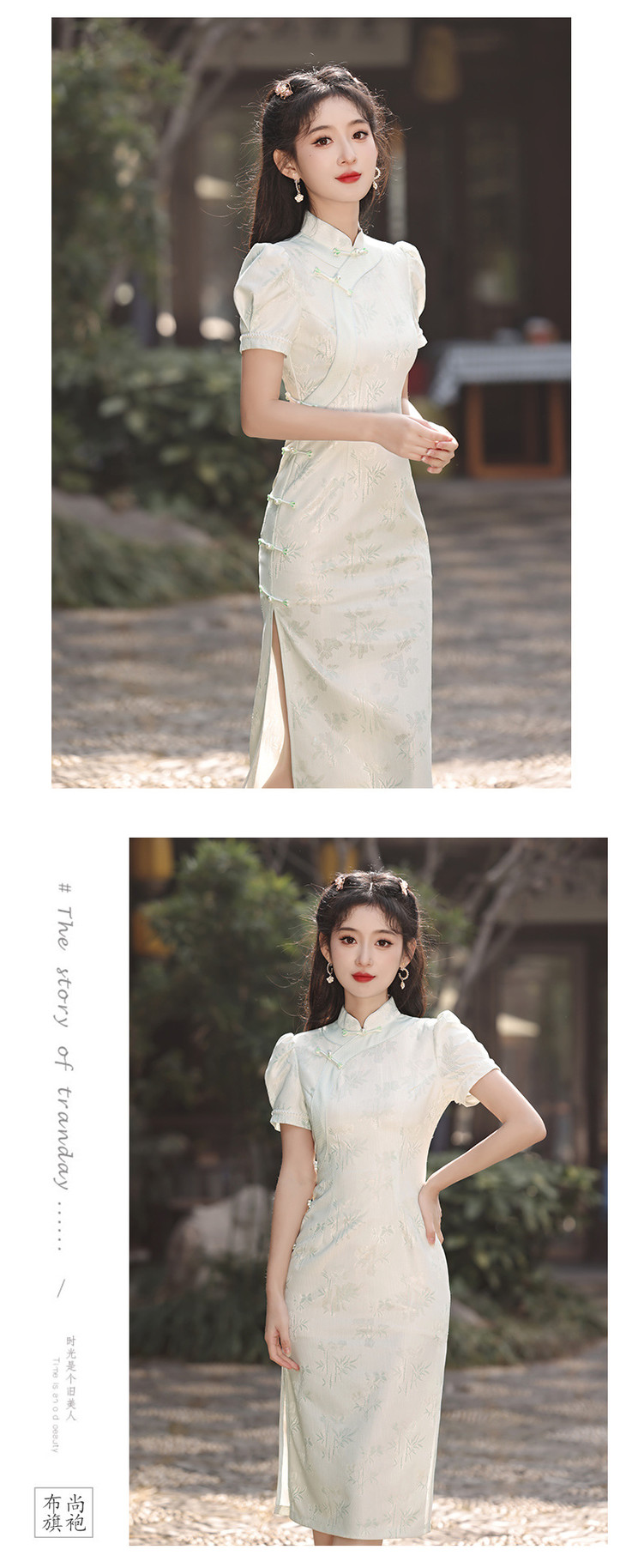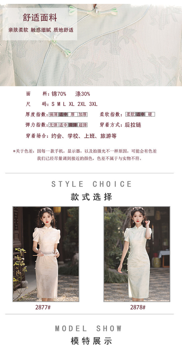 甜美温柔风锦棉提花小清新旗袍裙BS2877