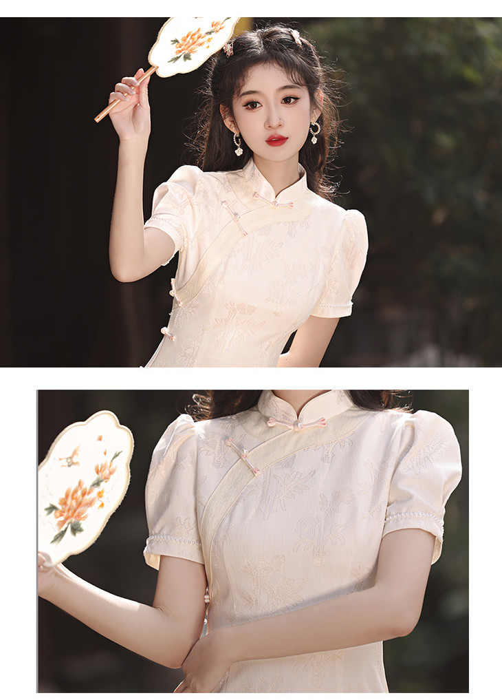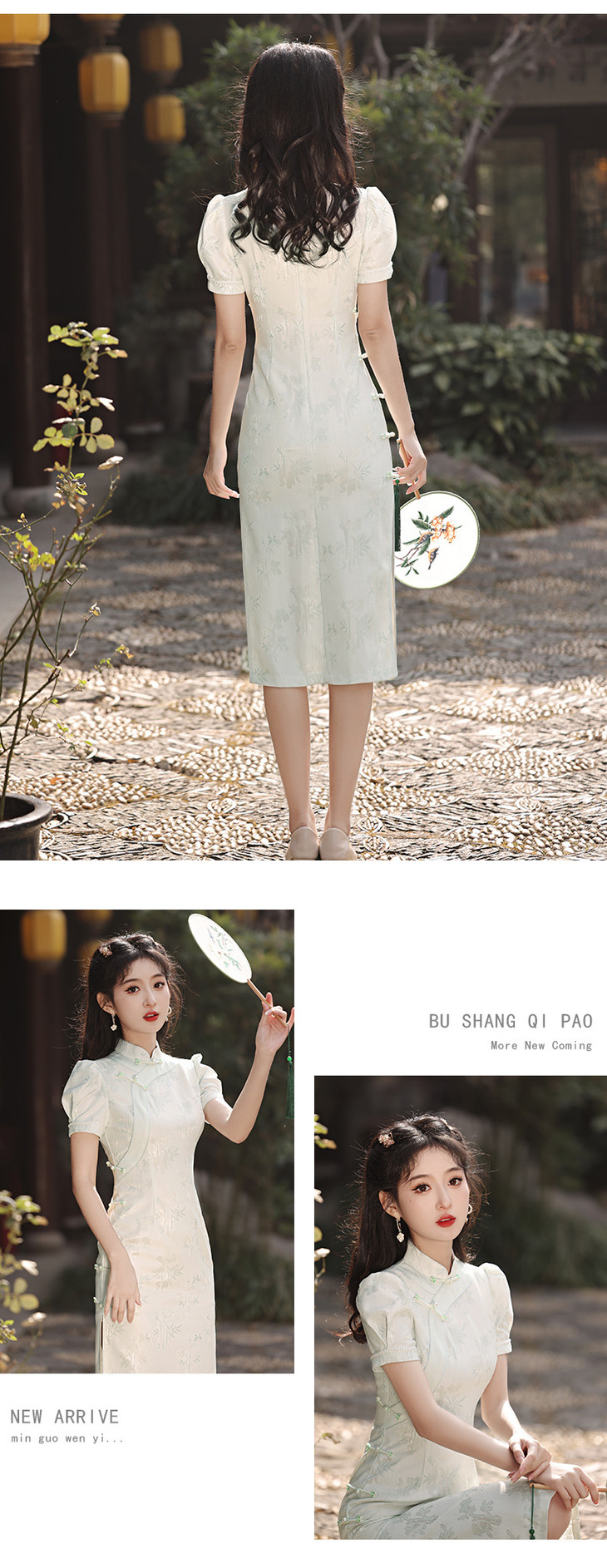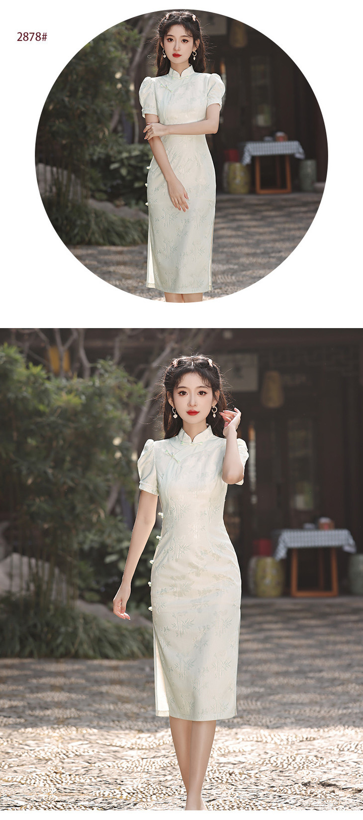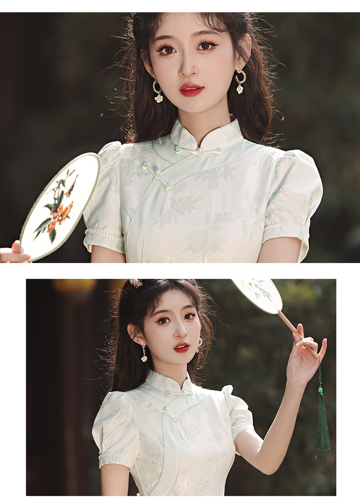 甜美温柔风锦棉提花小清新旗袍裙BS2877