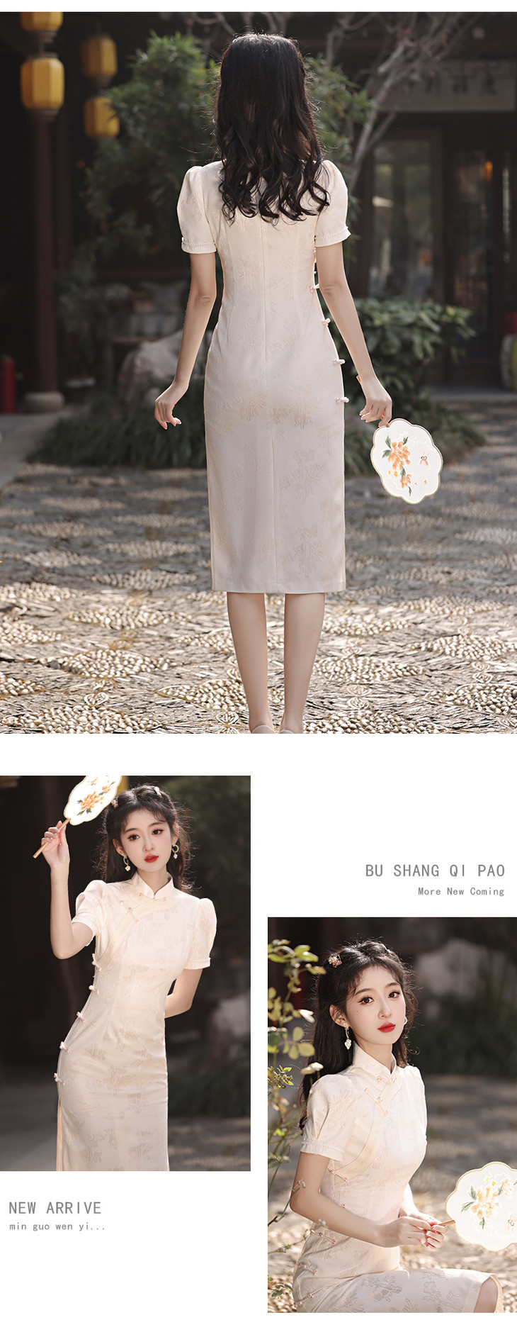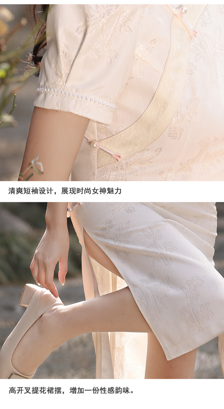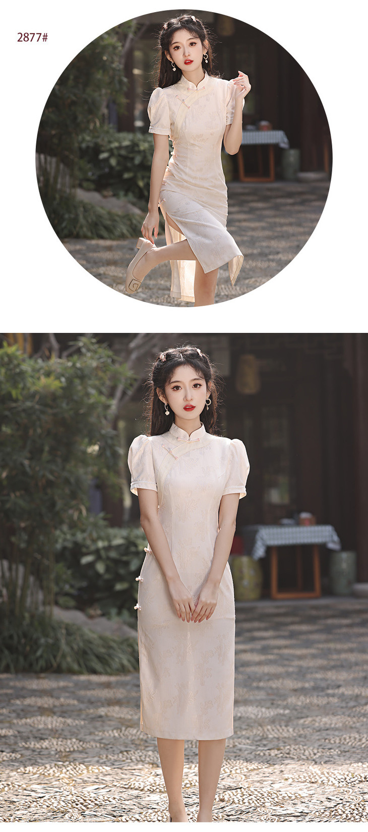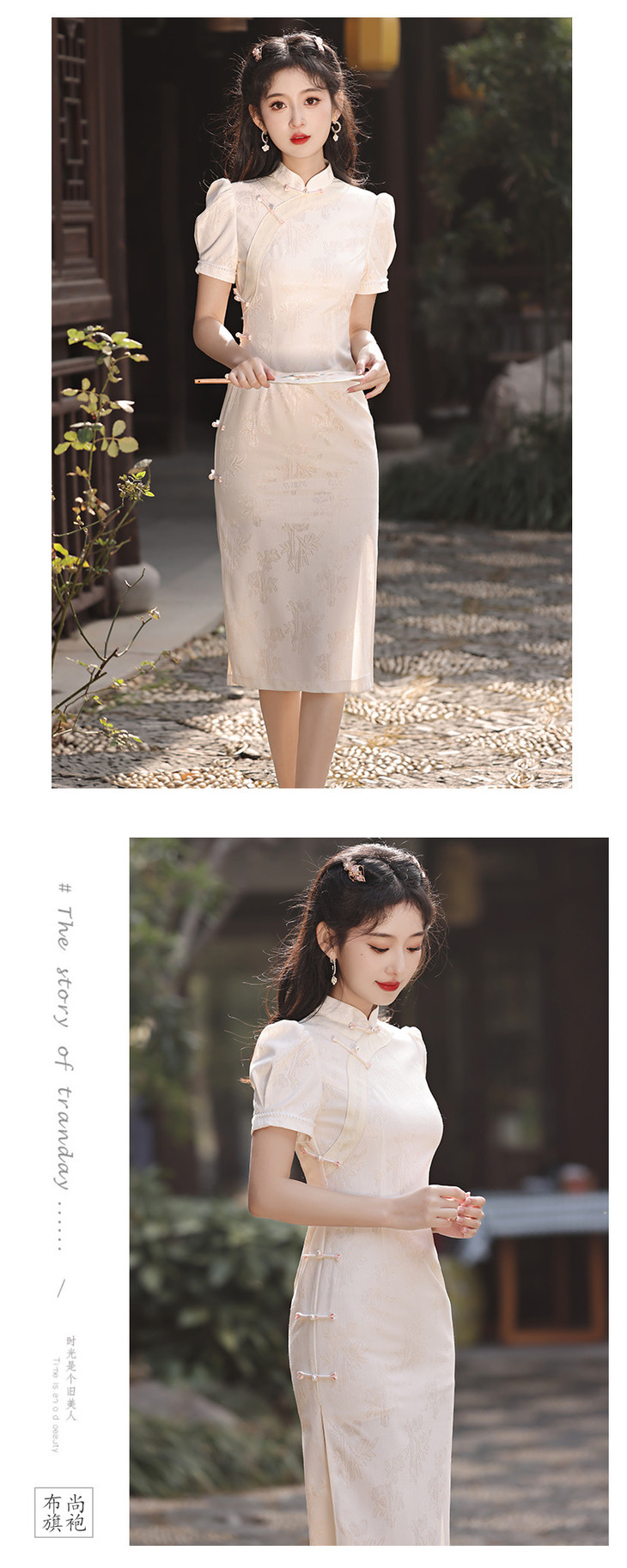 甜美温柔风锦棉提花小清新旗袍裙BS2877