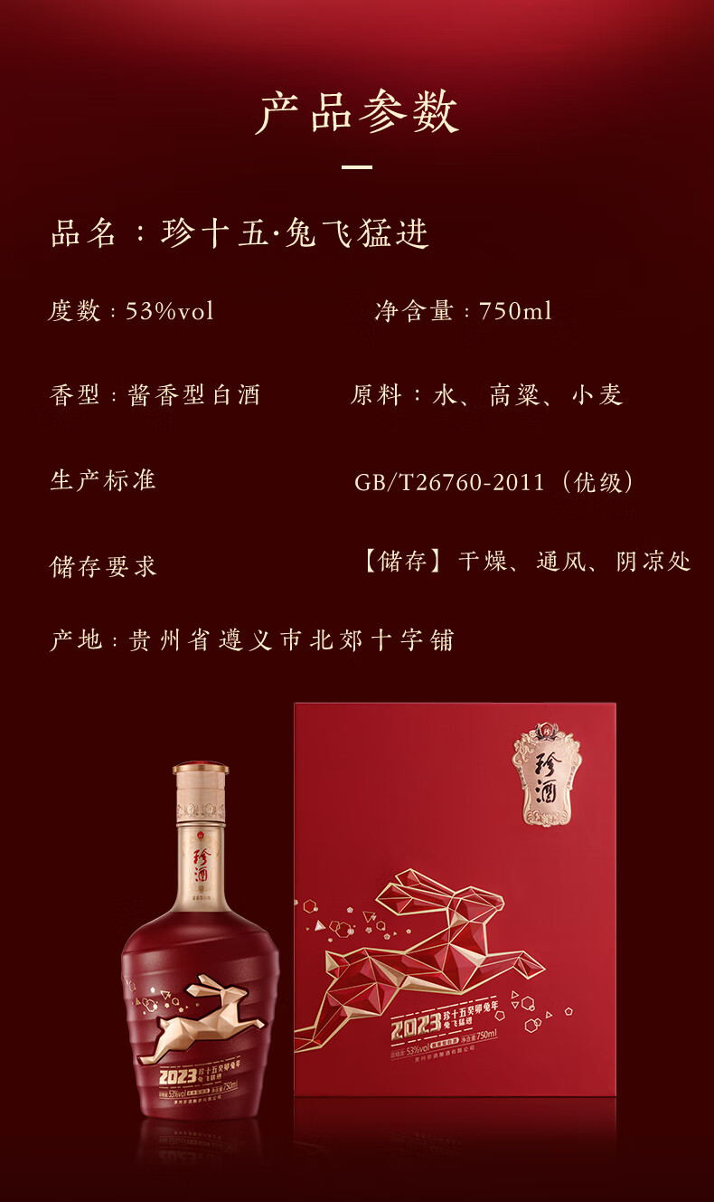 珍酒 珍十五 兔飞猛进 癸卯2023兔年 酱香型 750ml 53%vol