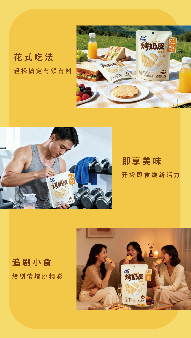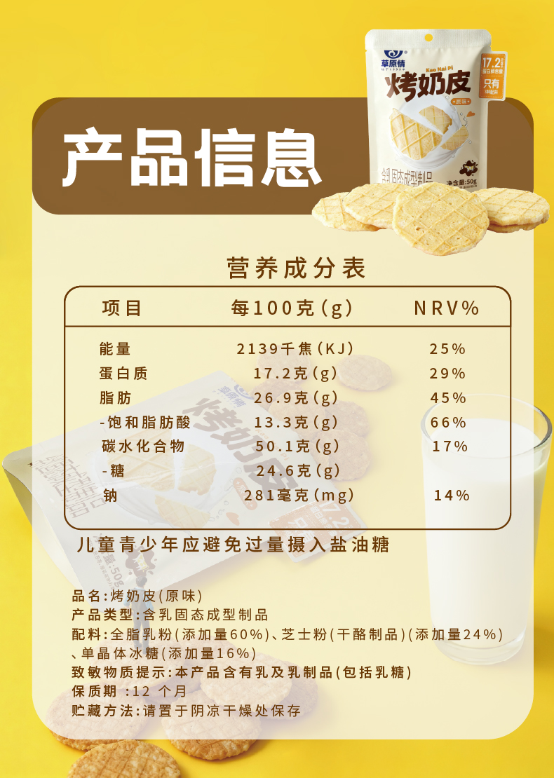 草原情 儿童零食酥酥脆脆办公室休闲零食 烤奶皮50g/袋