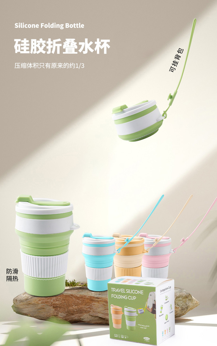 【硅胶折叠水杯❗可挂背包】便携式硅胶折叠水杯户外露营随手杯果汁杯办公咖啡杯伸缩杯漱口杯。ri