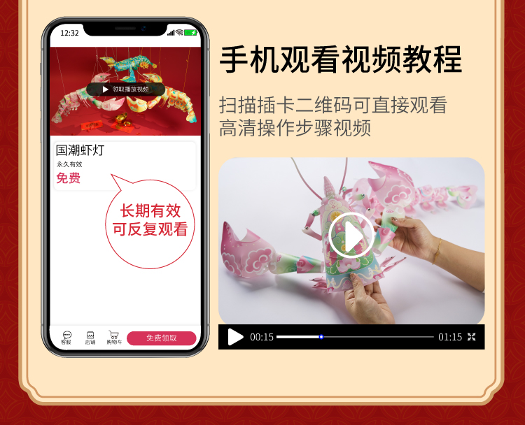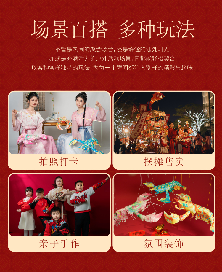 2025蛇年过新年春节元旦国潮虾灯手工diy灯笼儿童古风花灯材料包