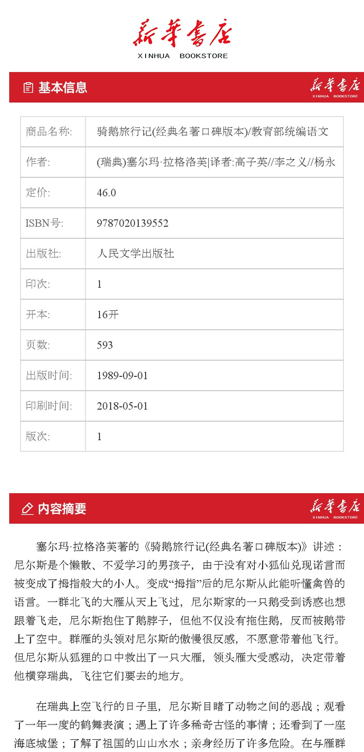 骑鹅旅行记 经典名著口碑版本 语文阅读推荐丛书 青少年完整版无删减原著正版 人民文学出版社 五六七八九年级初中课外书文学名著