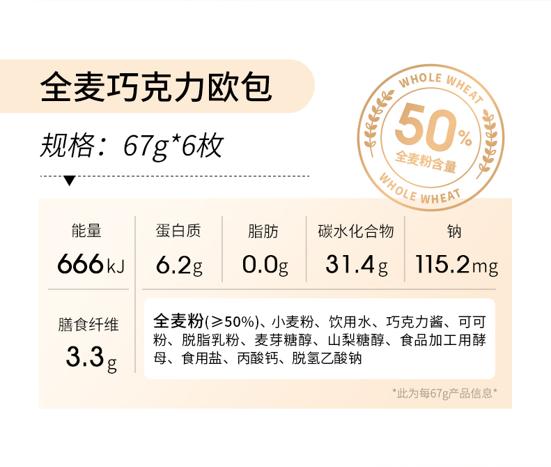 七年五季巧克力全麦面包健康休闲小吃零食0低脂精粗粮早代餐欧包6只装