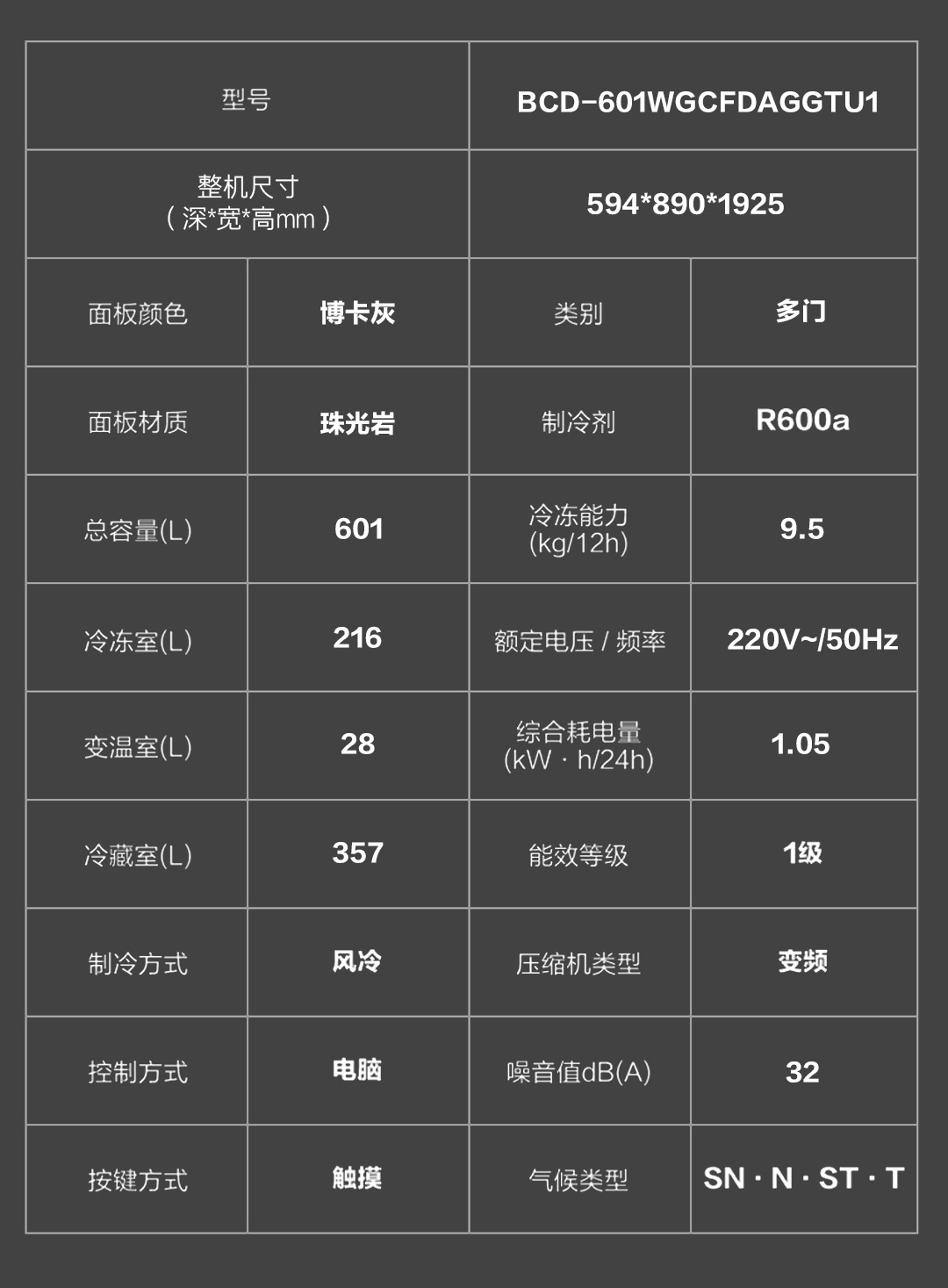 卡萨帝(Casarte)冰箱 BCD-601WGCFDAGGTU1