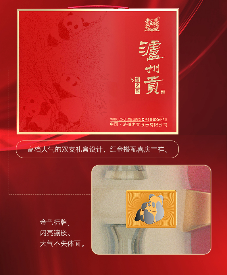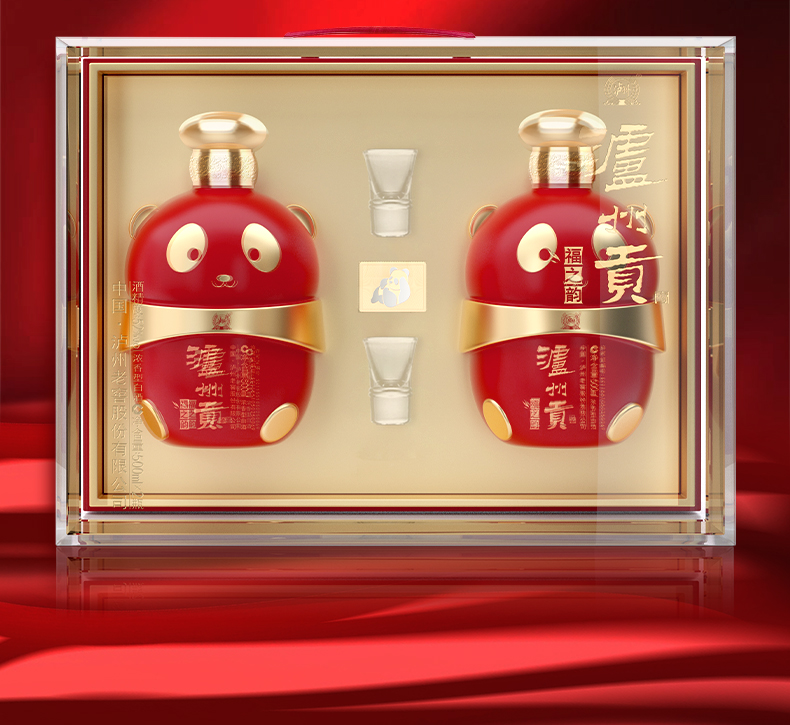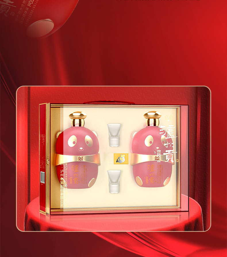 【品年酒】泸州贡福之韵52度浓香型白酒大熊猫礼盒装500ml*2瓶