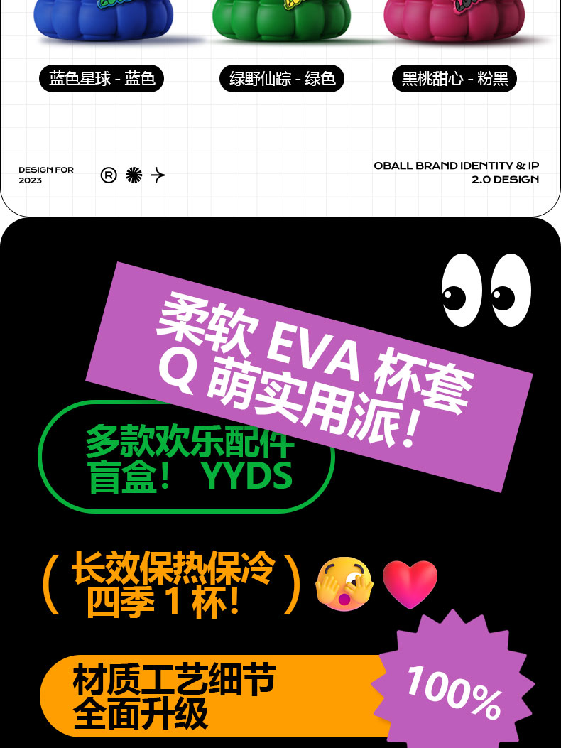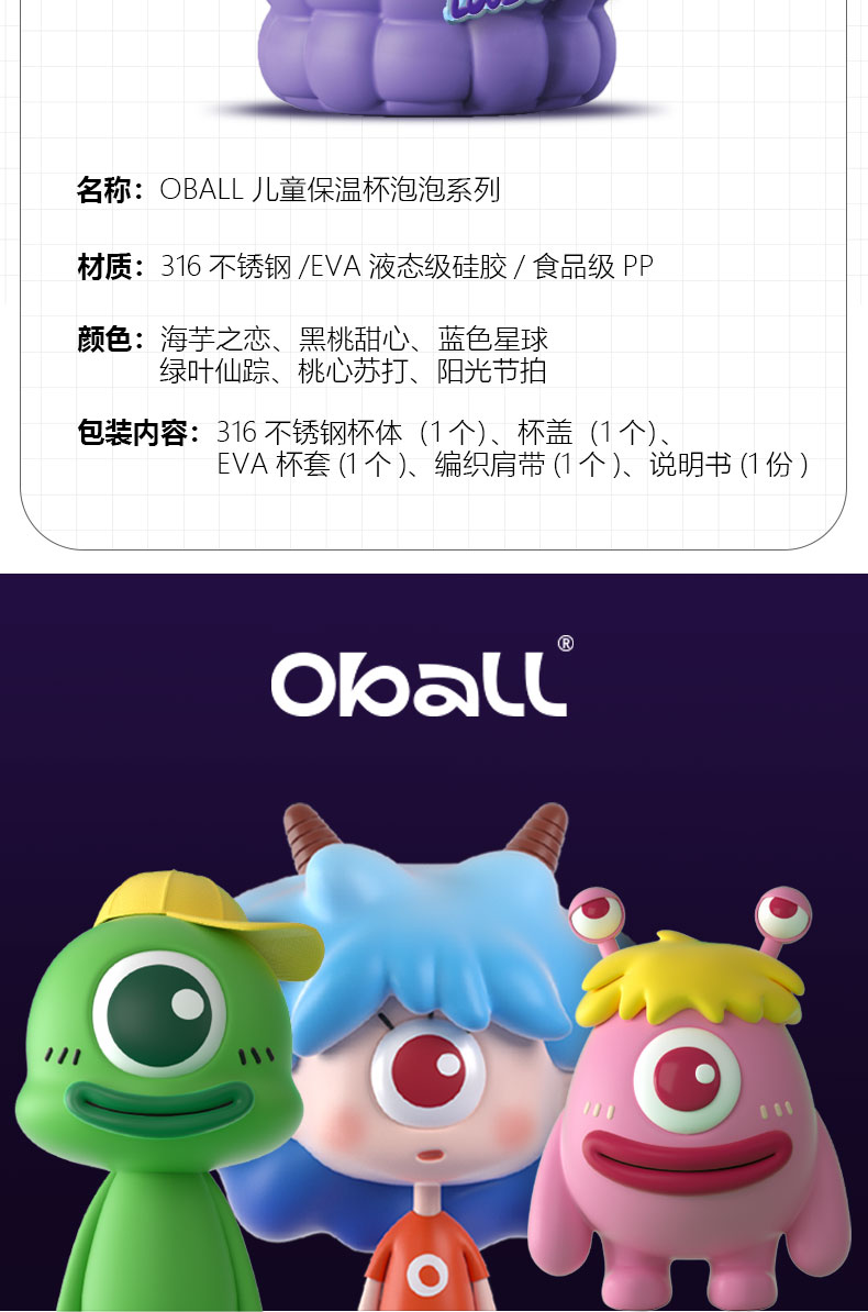 【线上线下爆款】oball多巴胺泡泡杯母婴保温水杯316不锈钢