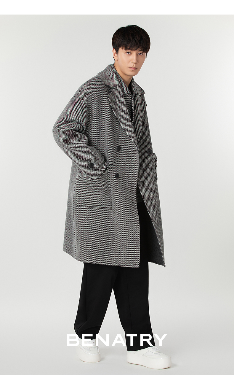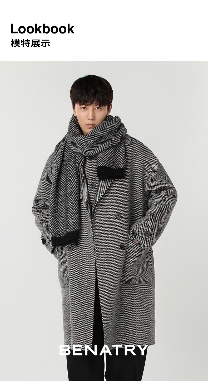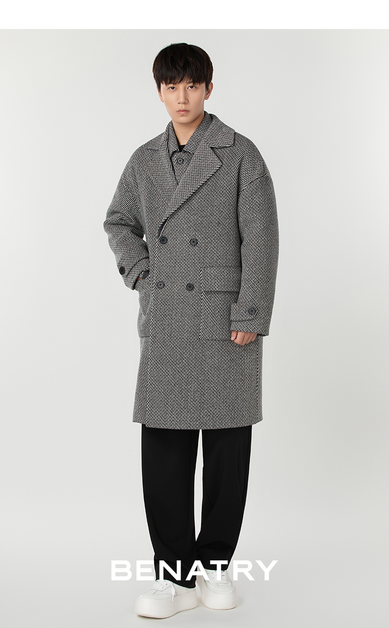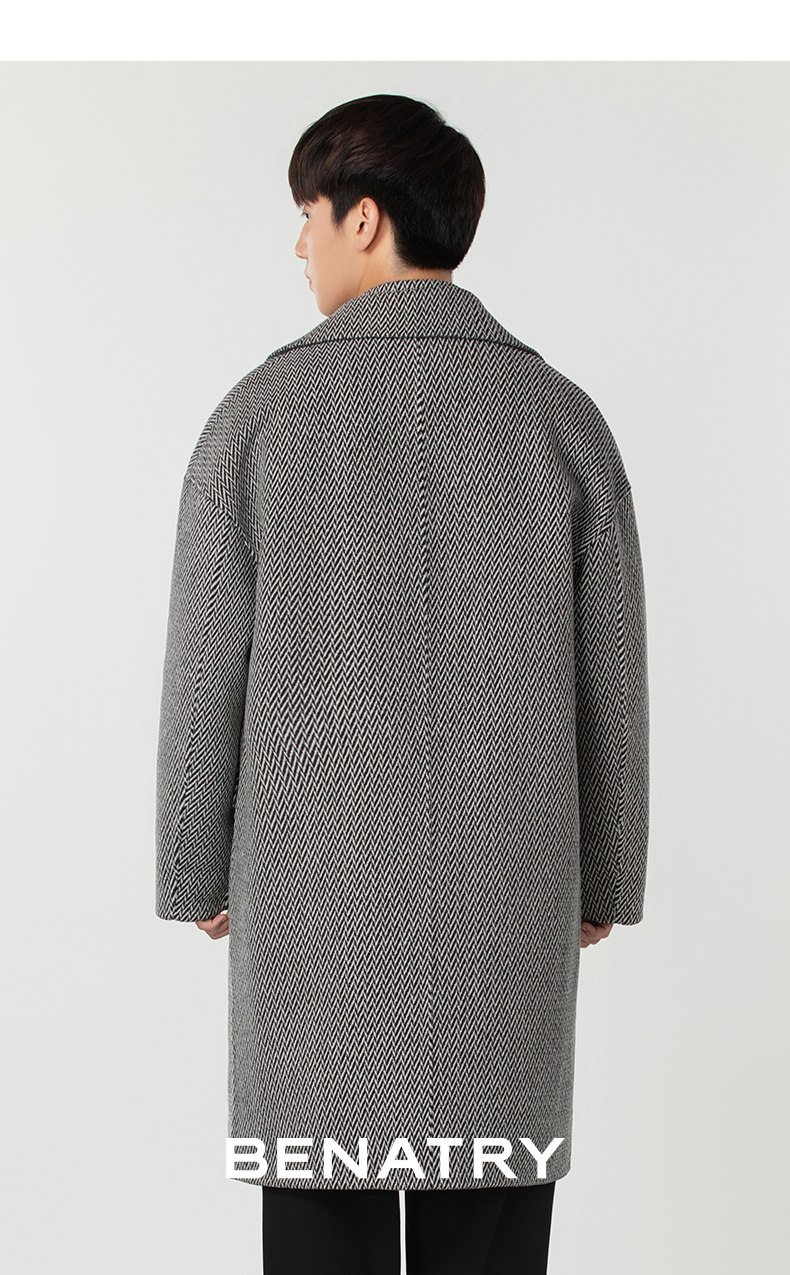 贝纳川时尚大翻领宽松长袖男士中长款大衣ECP328003402
