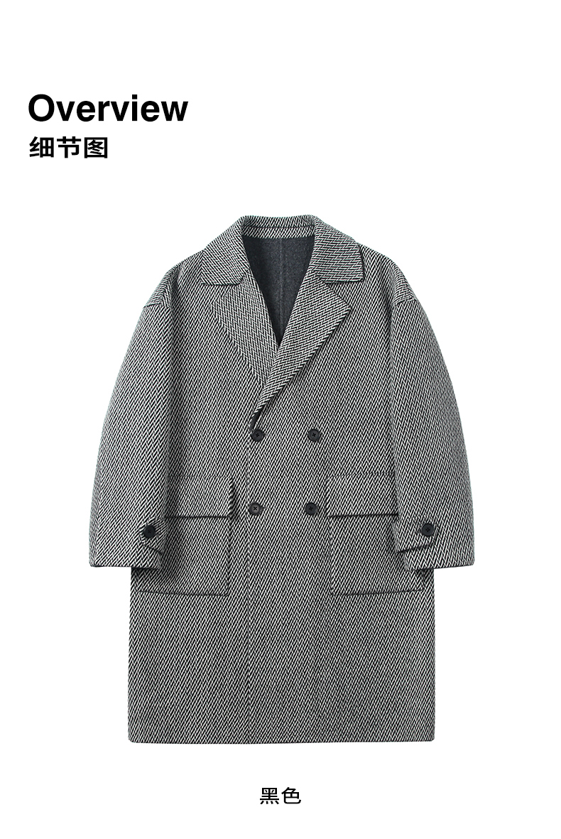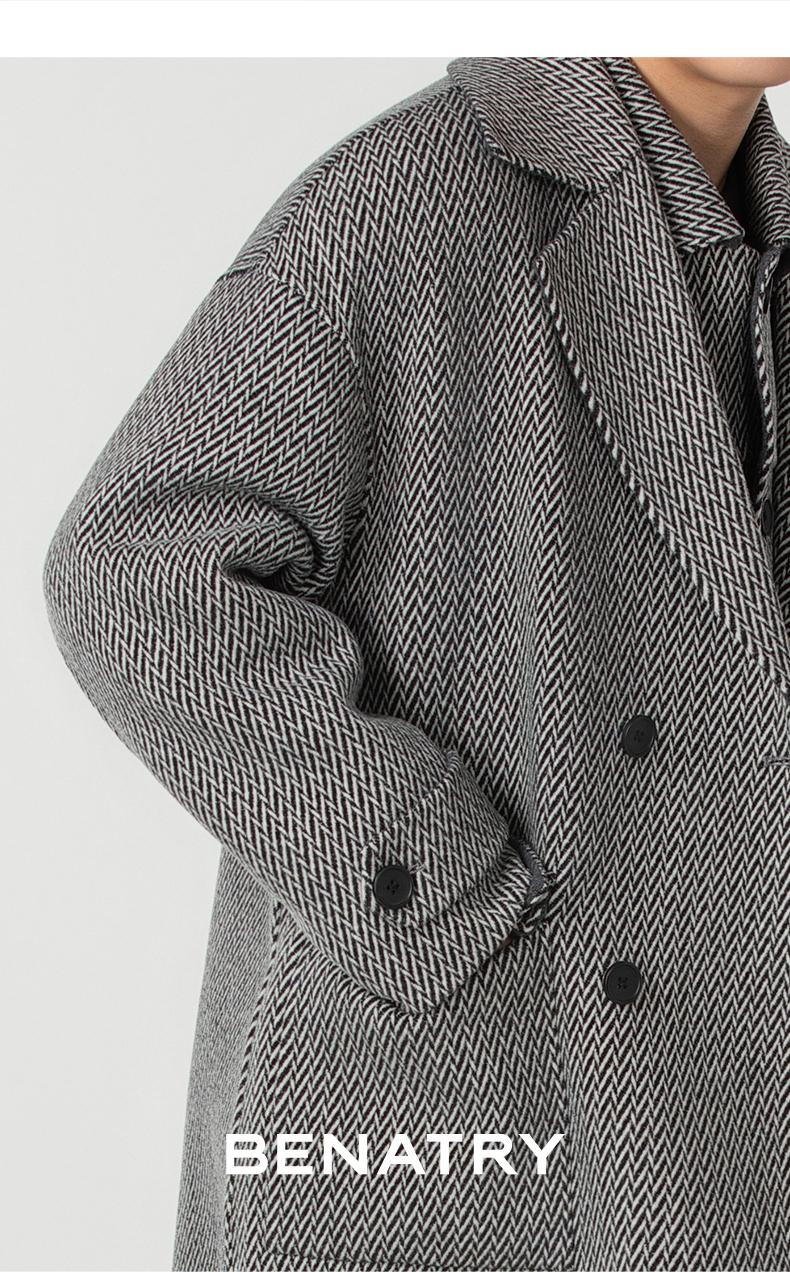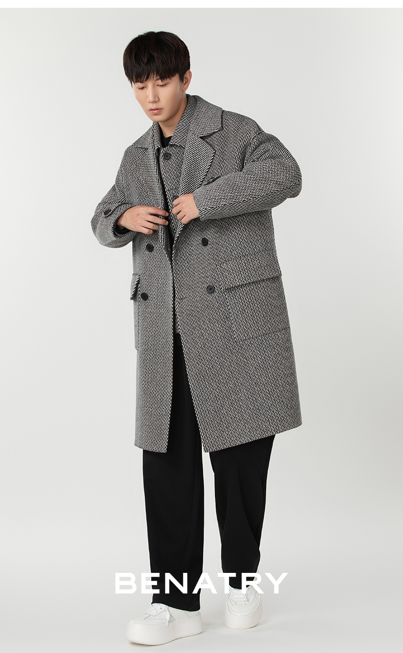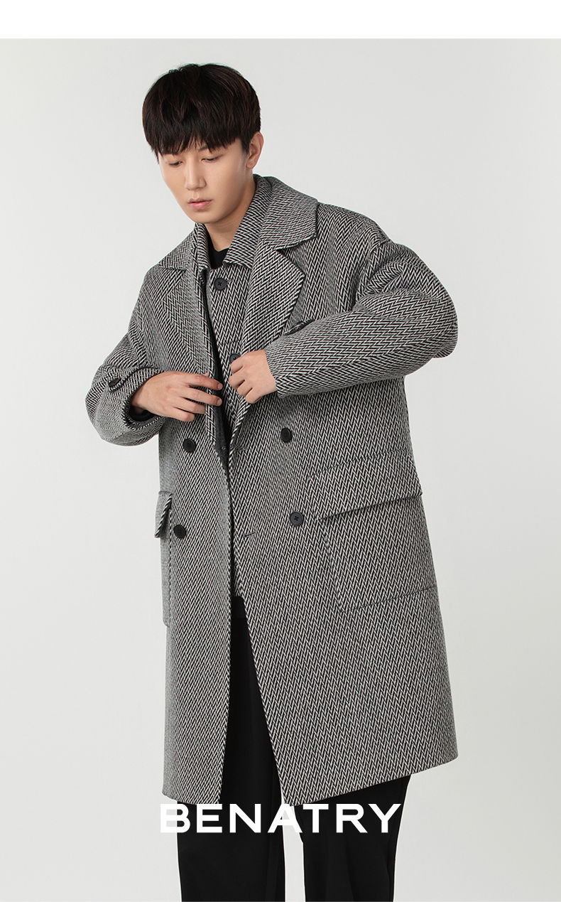 贝纳川时尚大翻领宽松长袖男士中长款大衣ECP328003402