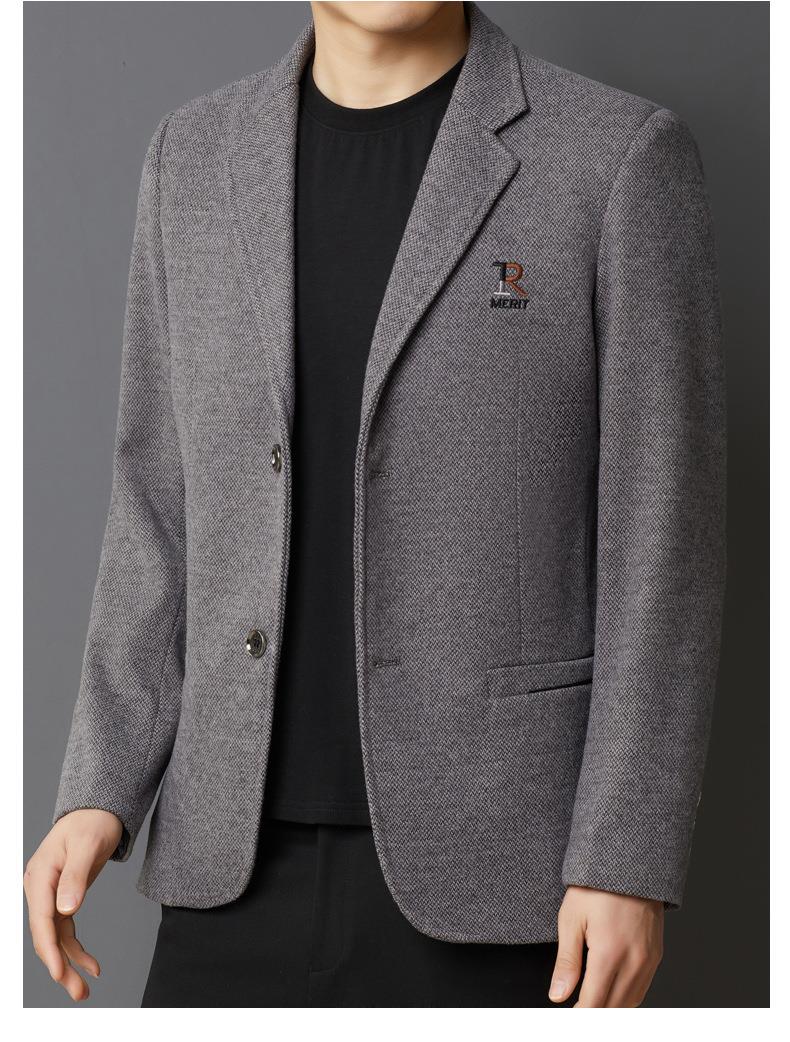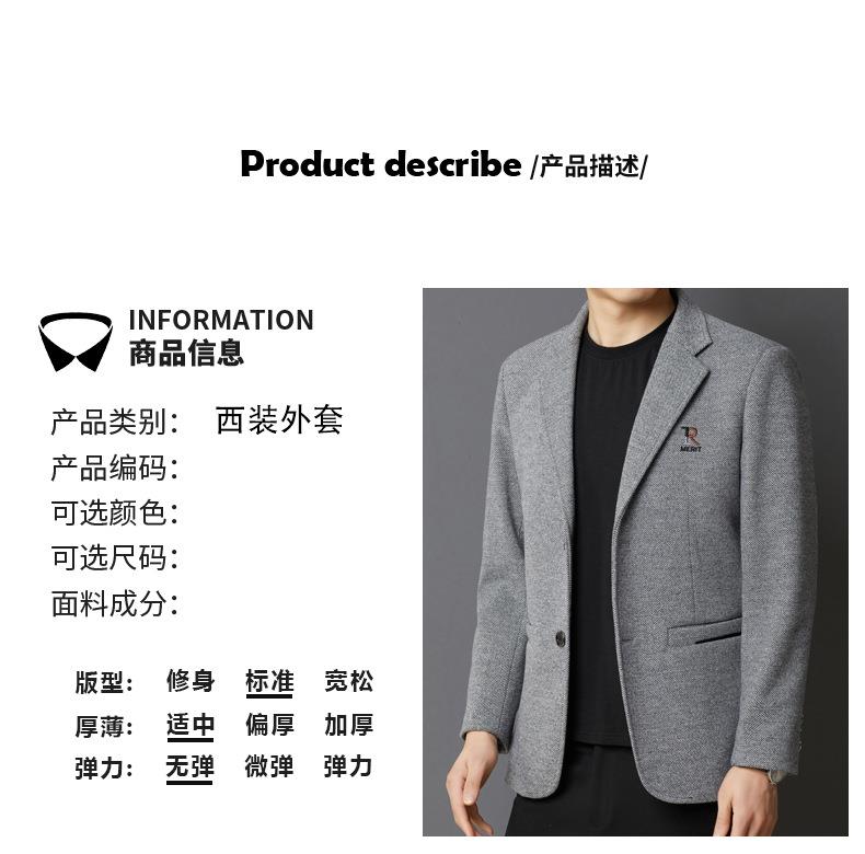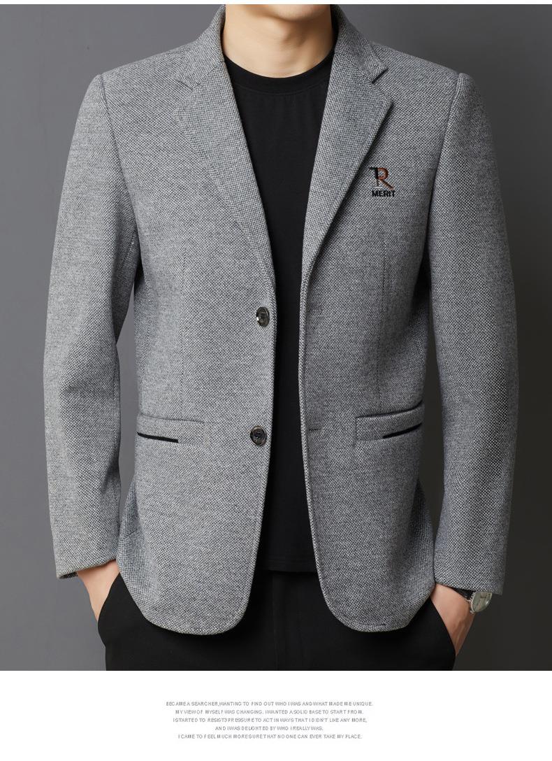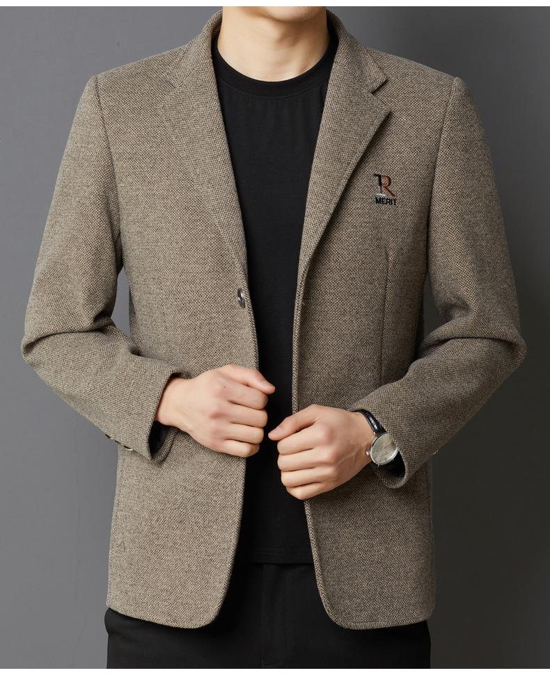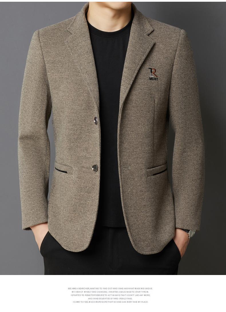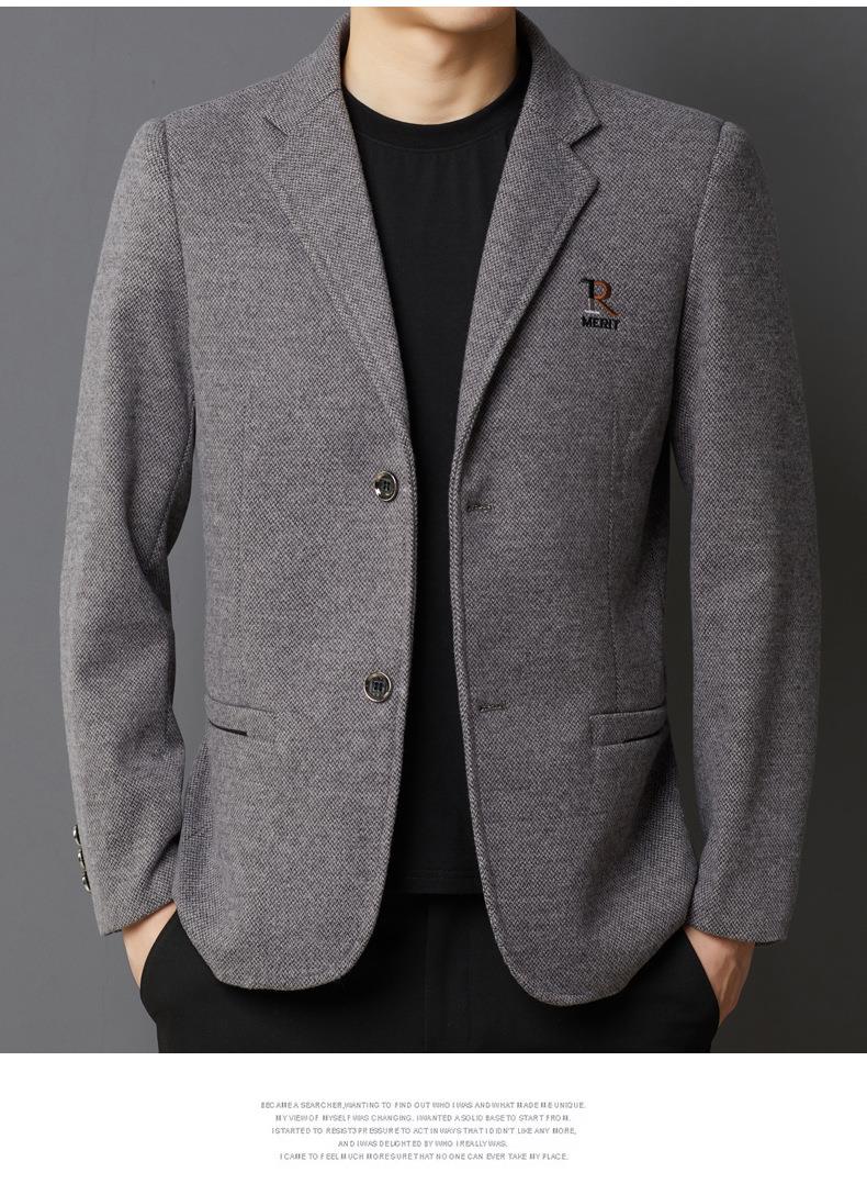 秋冬季男士翻领休闲西服中年字母刺绣宽松爸爸装商务西装