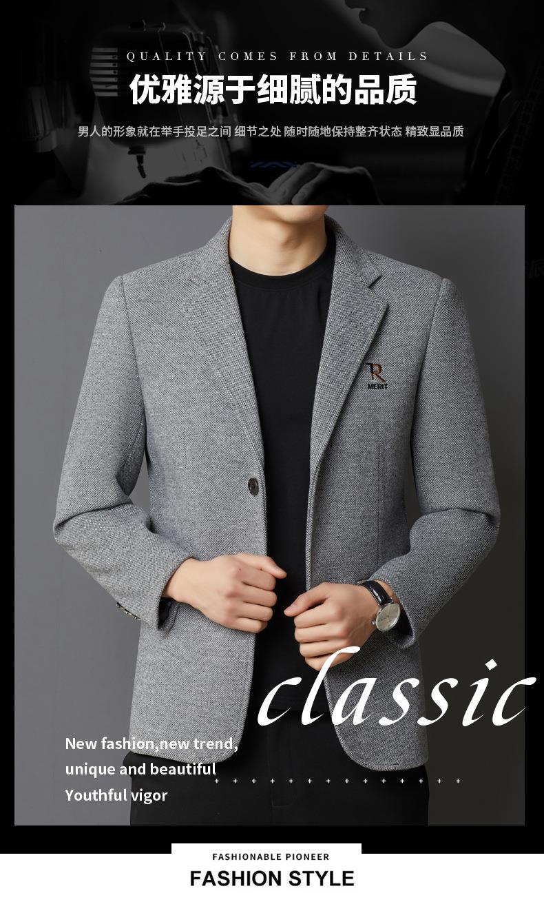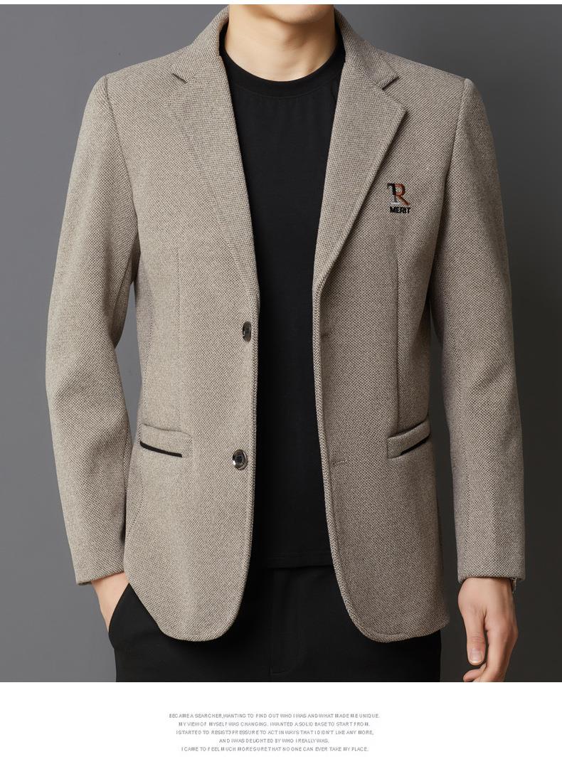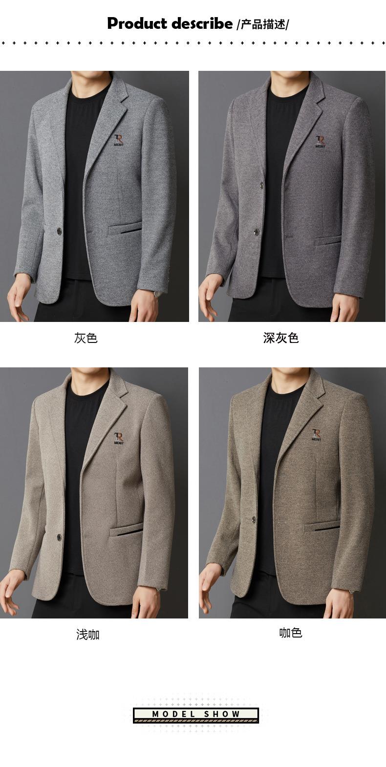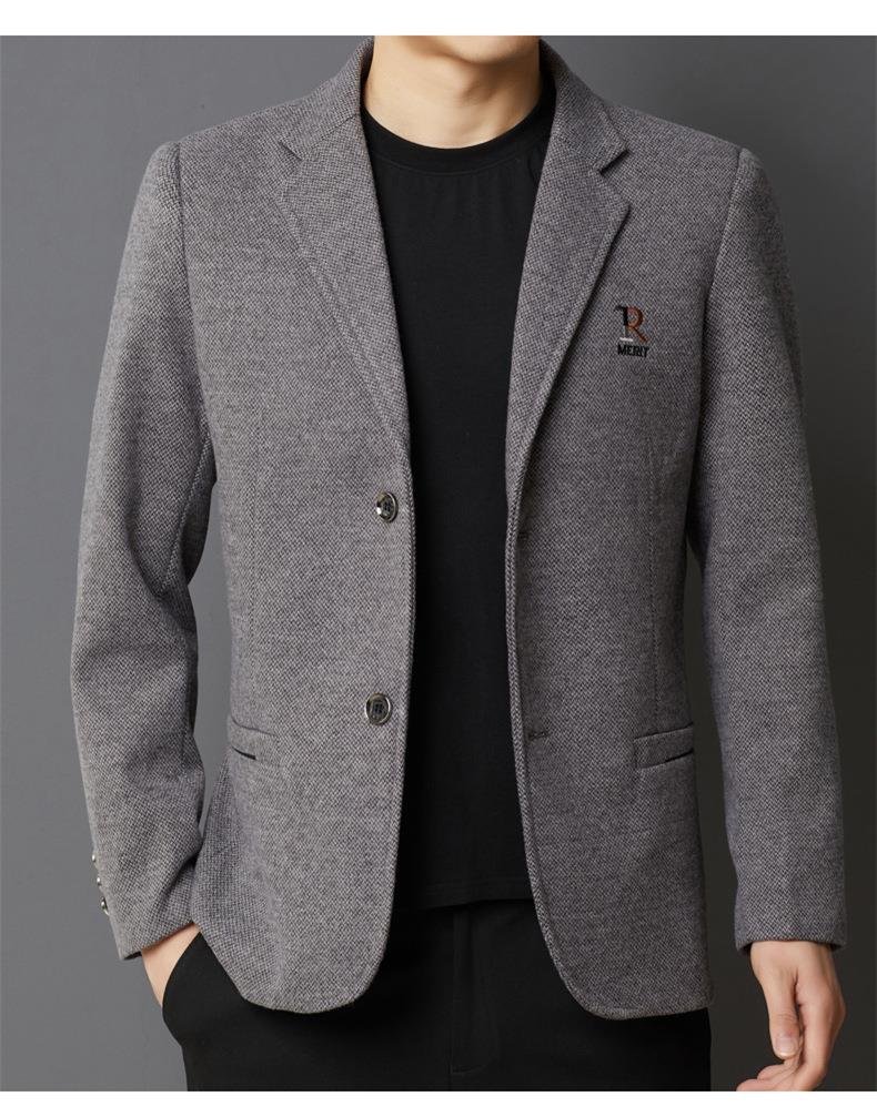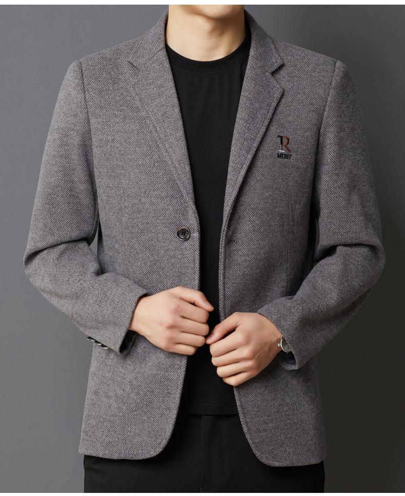 秋冬季男士翻领休闲西服中年字母刺绣宽松爸爸装商务西装