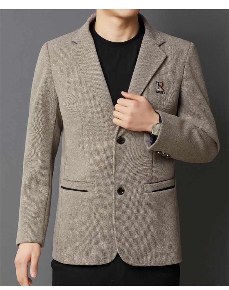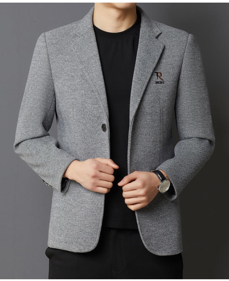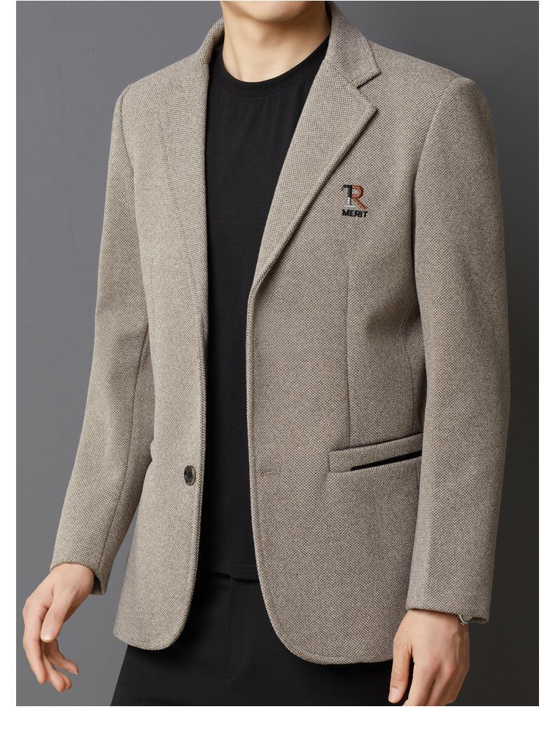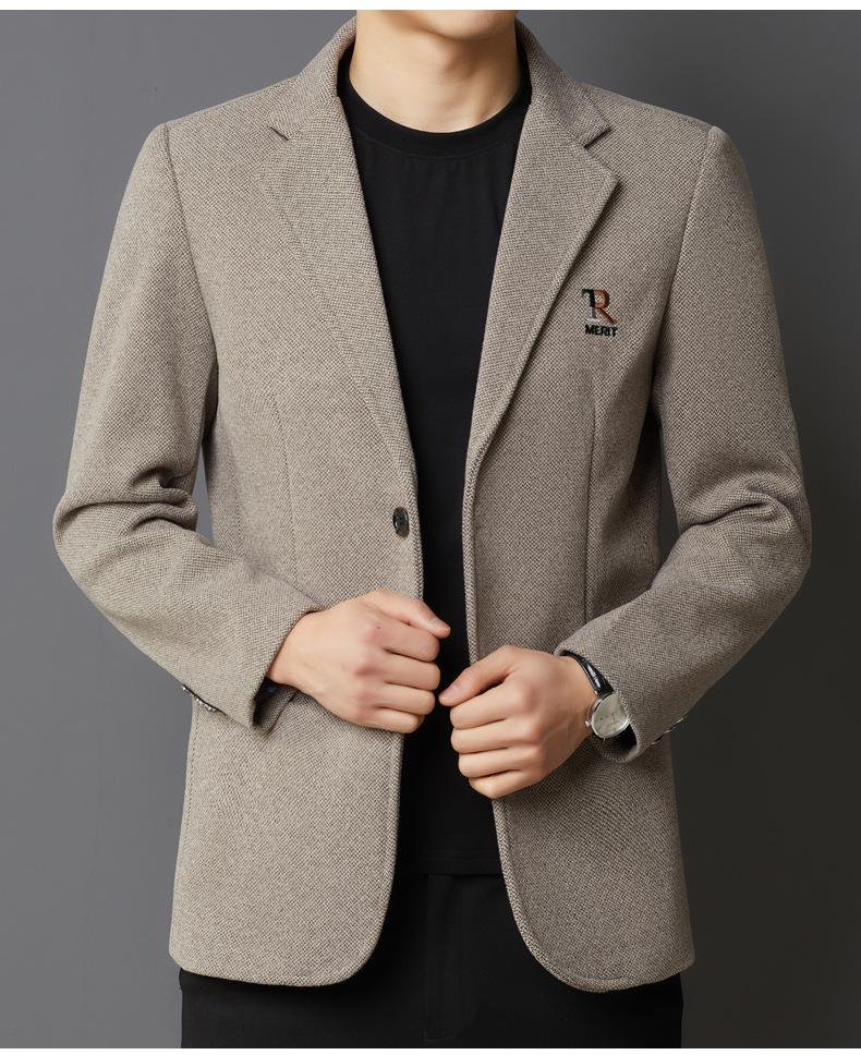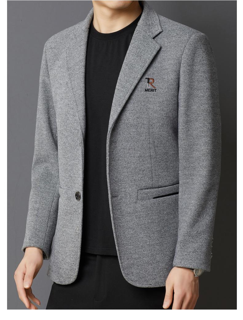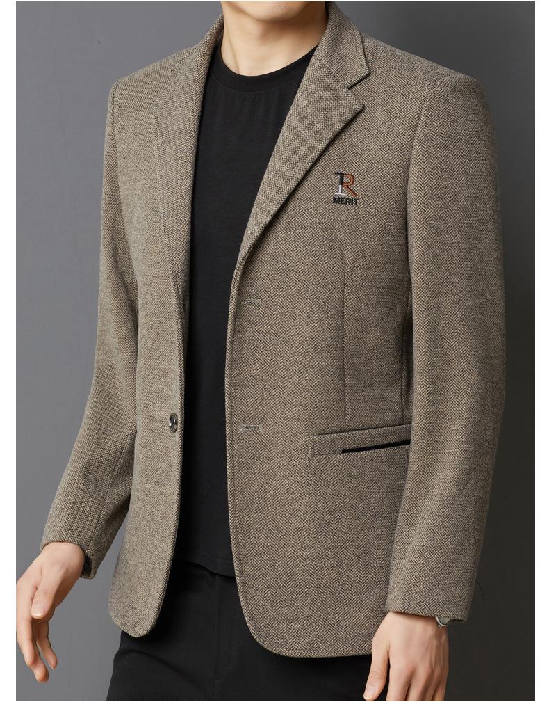 秋冬季男士翻领休闲西服中年字母刺绣宽松爸爸装商务西装