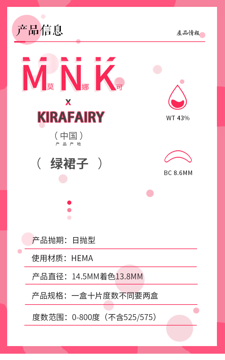 Kirafairy(kirafairy) 日抛(十片装) 绿裙子 直径14.5mm着色13.8mm