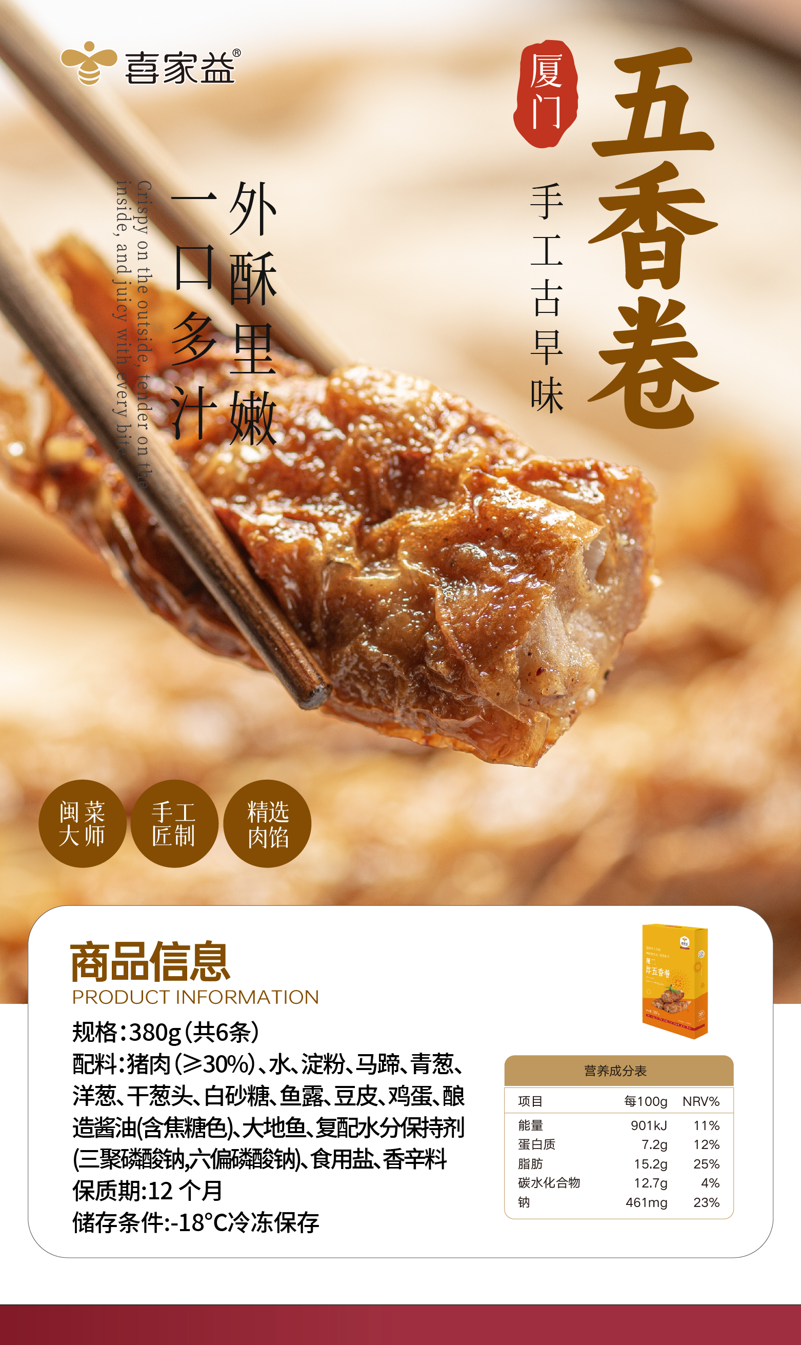 「临家商城」厦门炸五香卷|精选猪肉,头层豆皮,酥脆香鲜的闽南传统风味——临家NearMart