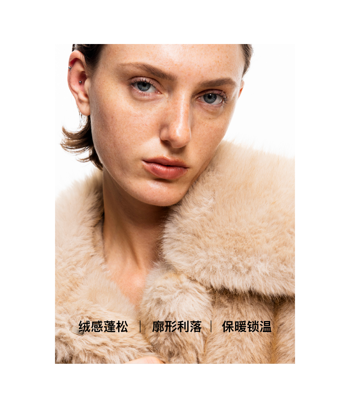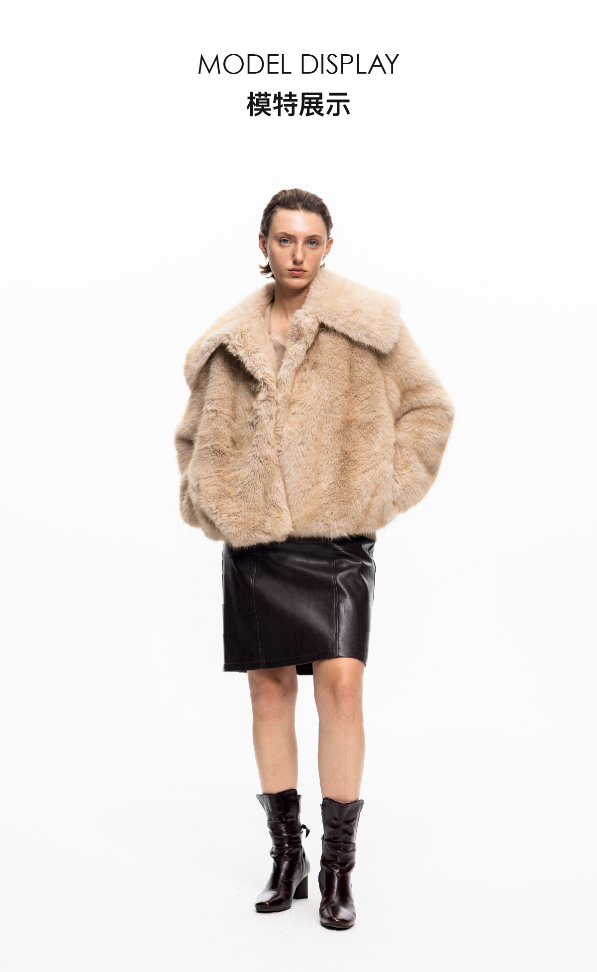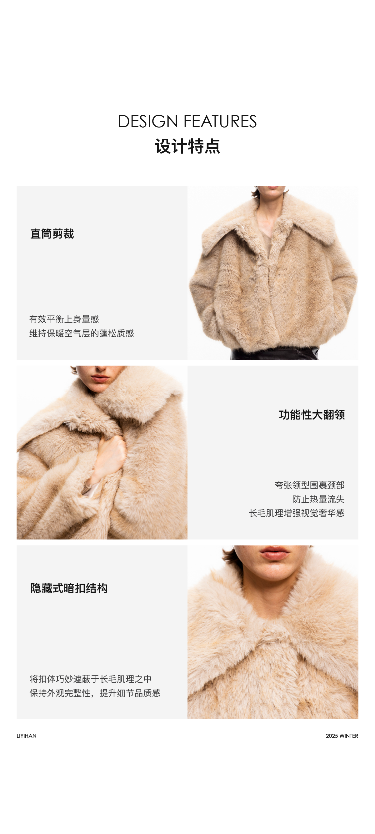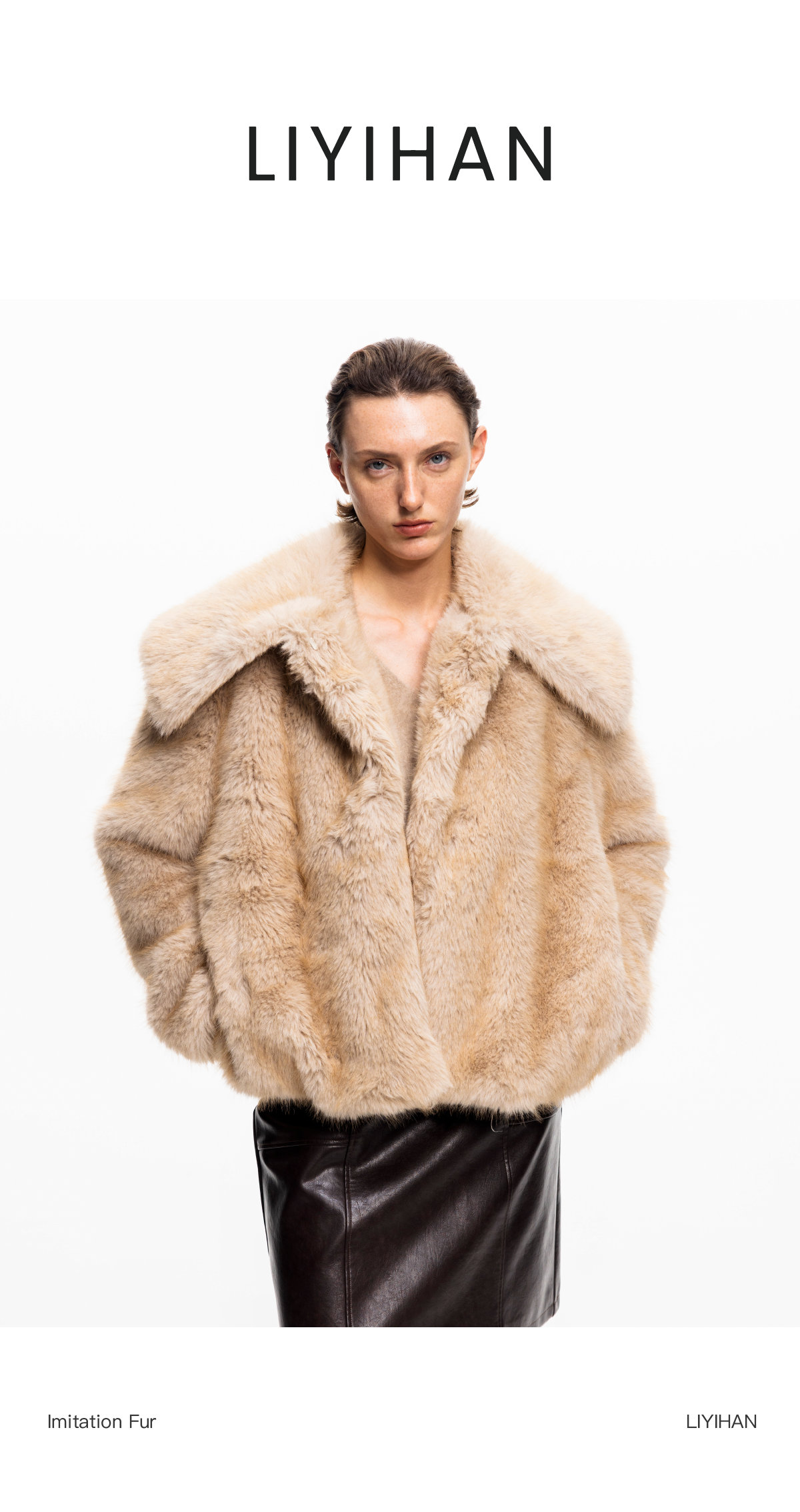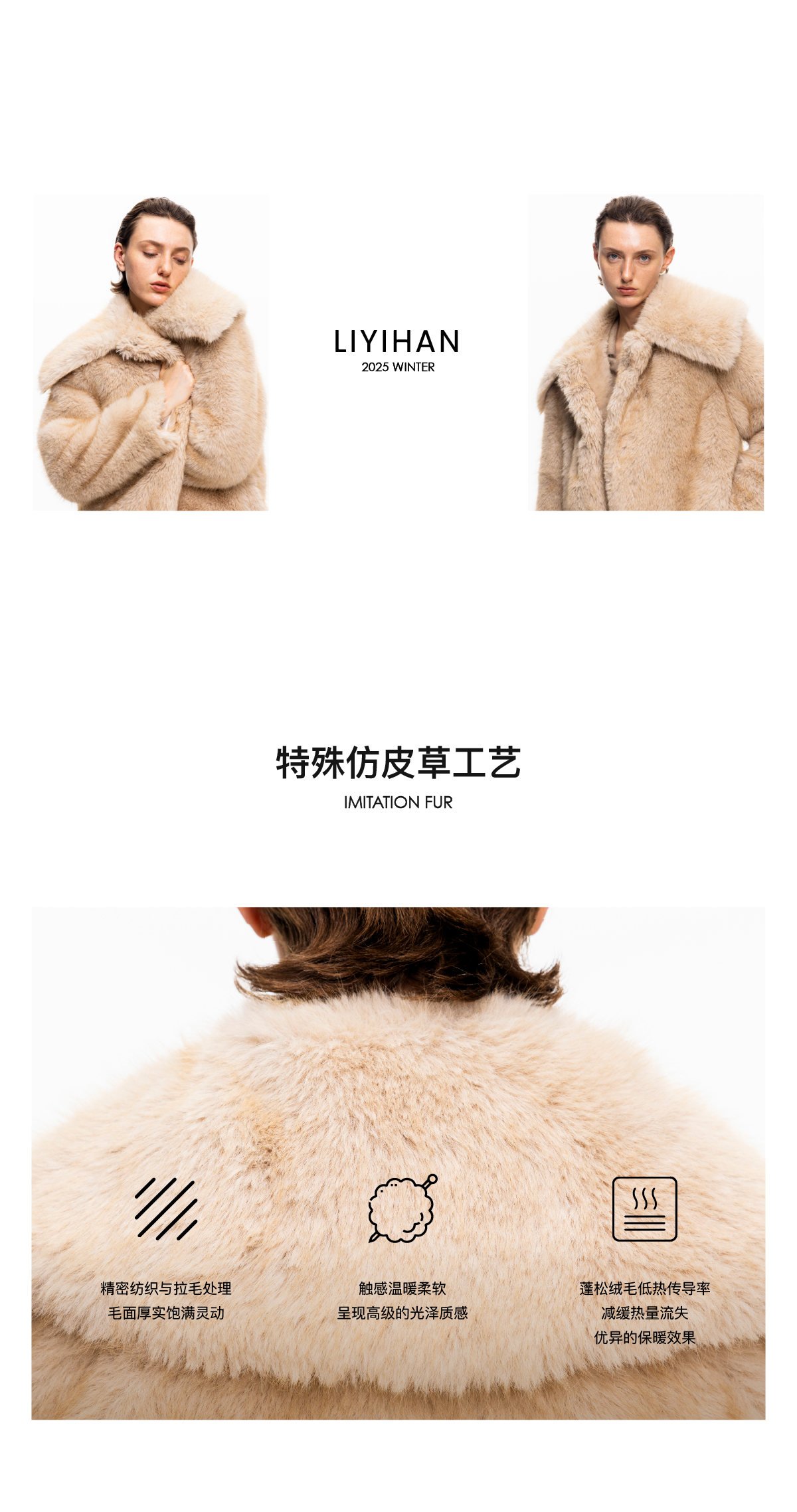 LIYIHAN 2025冬季新款职场环保直筒皮草女咖色复古小众设计感保暖