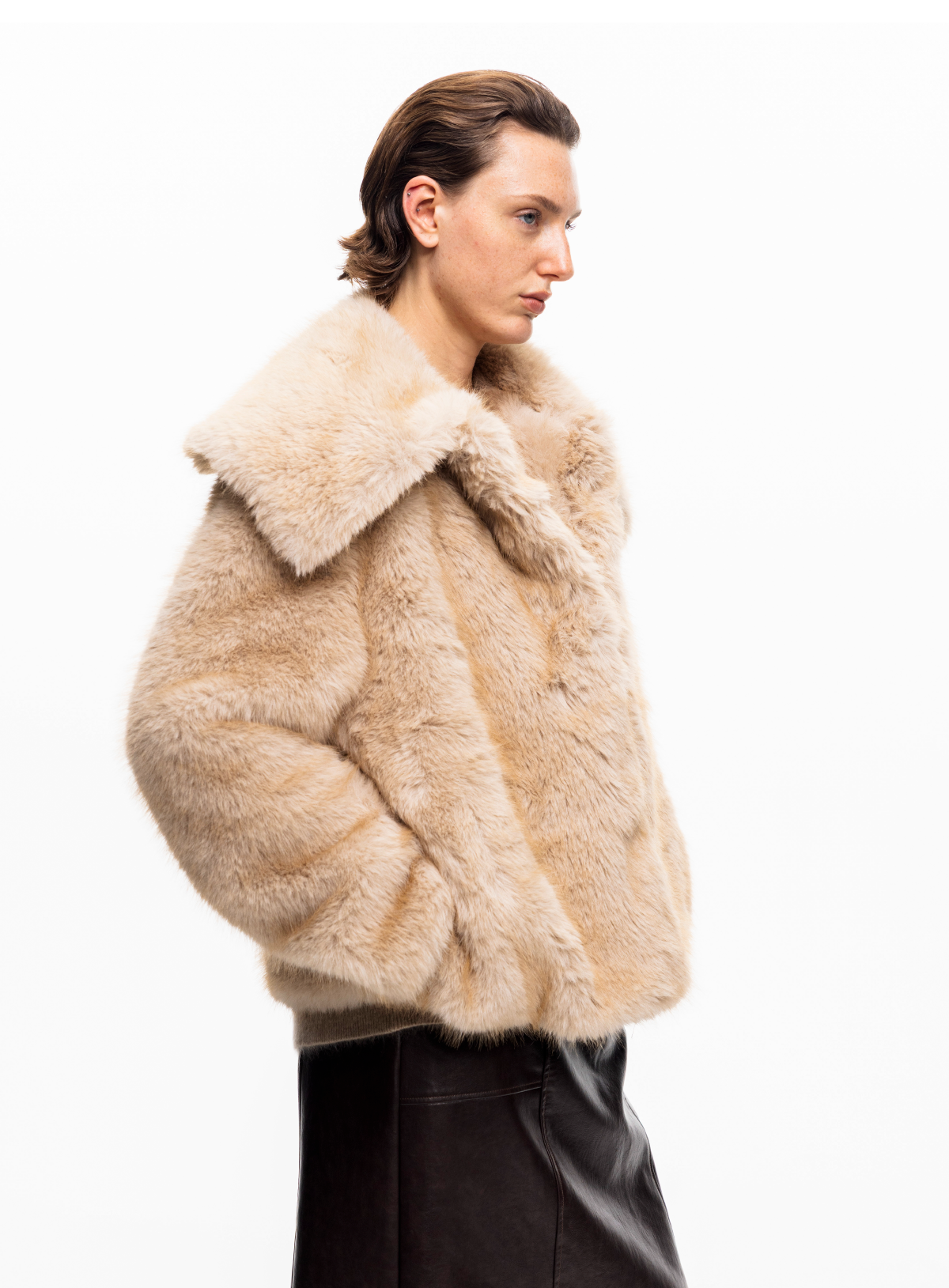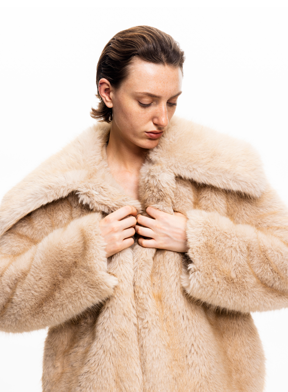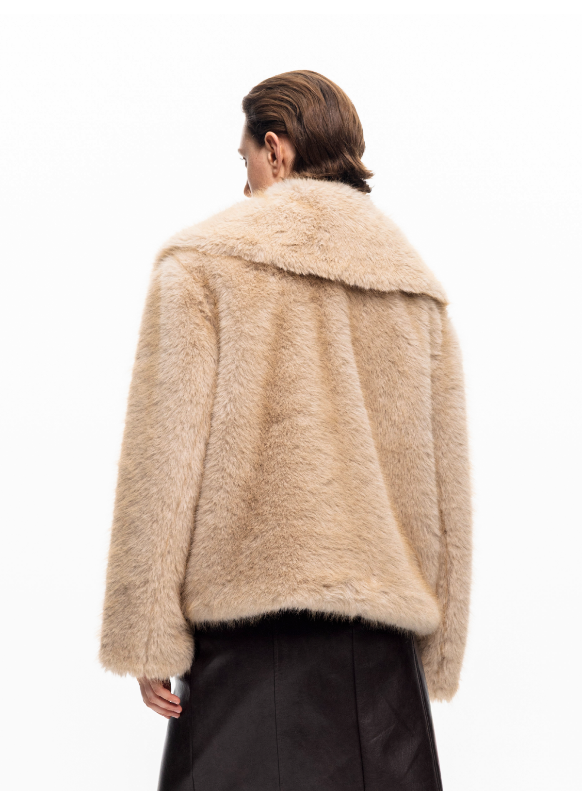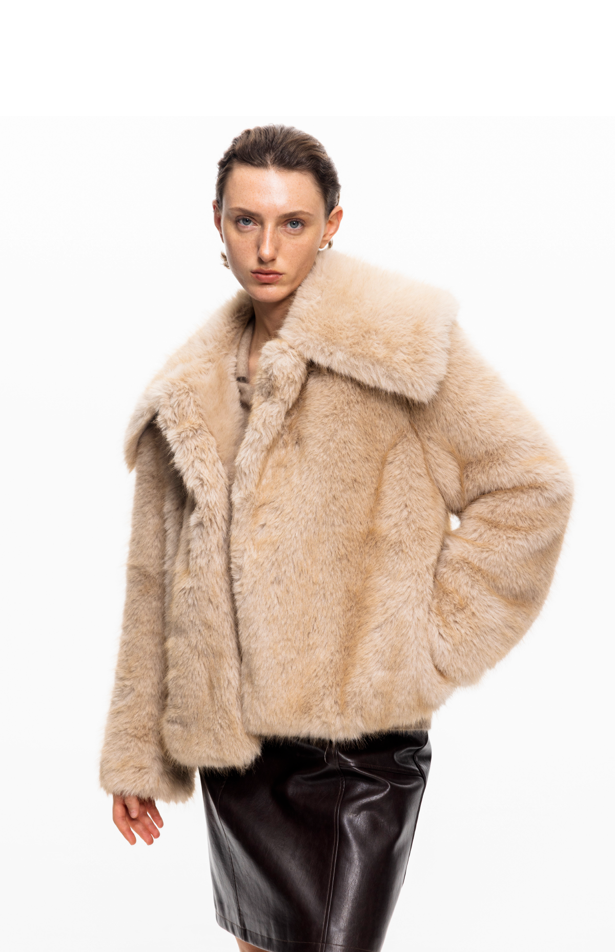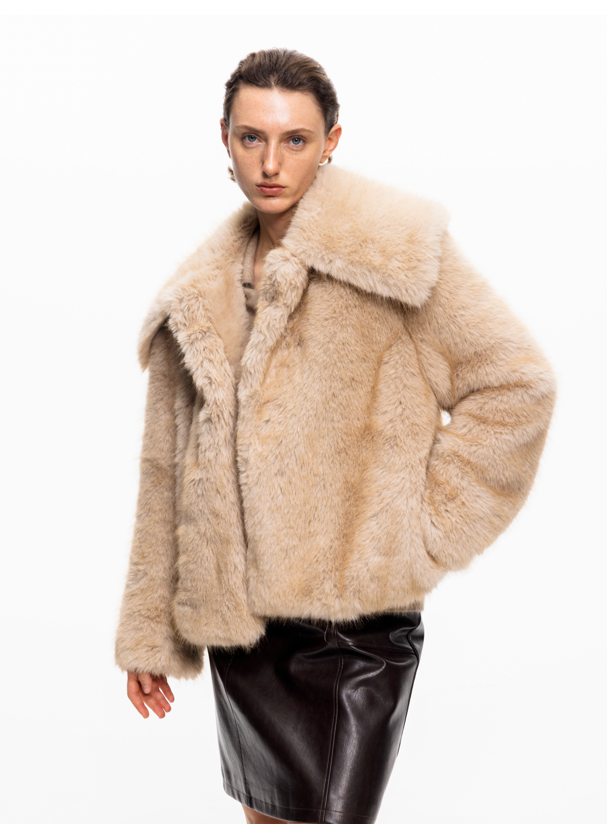 LIYIHAN 2025冬季新款职场环保直筒皮草女咖色复古小众设计感保暖