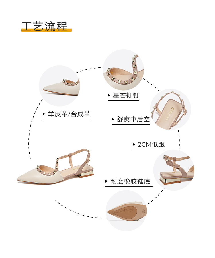 【铆钉系列】星期六时尚尖头中后空凉鞋SSD1114225