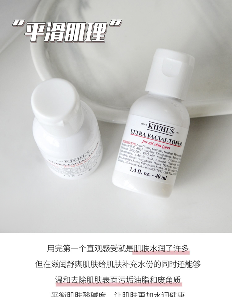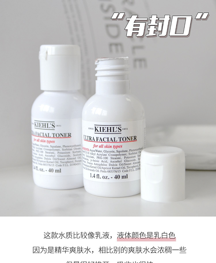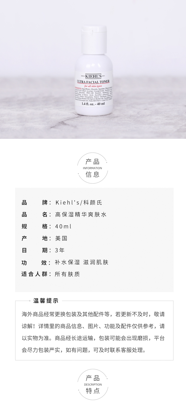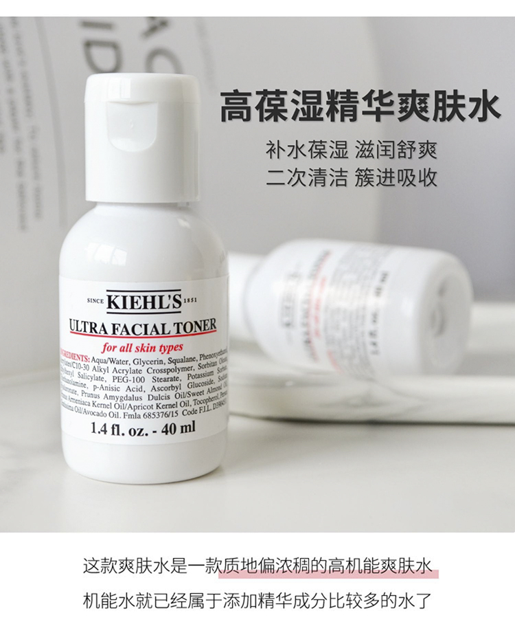 Kiehl’s科颜氏高保湿精华爽肤水40ml补水保湿提亮抗氧化修护干燥
