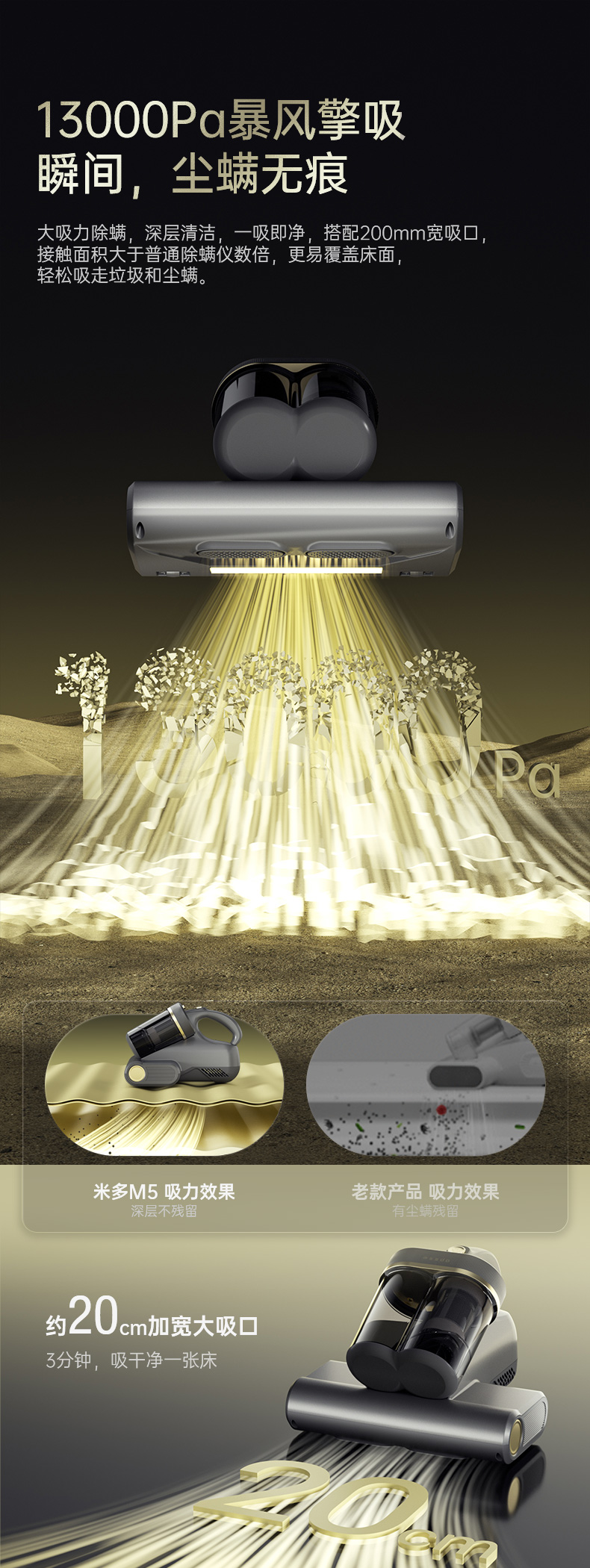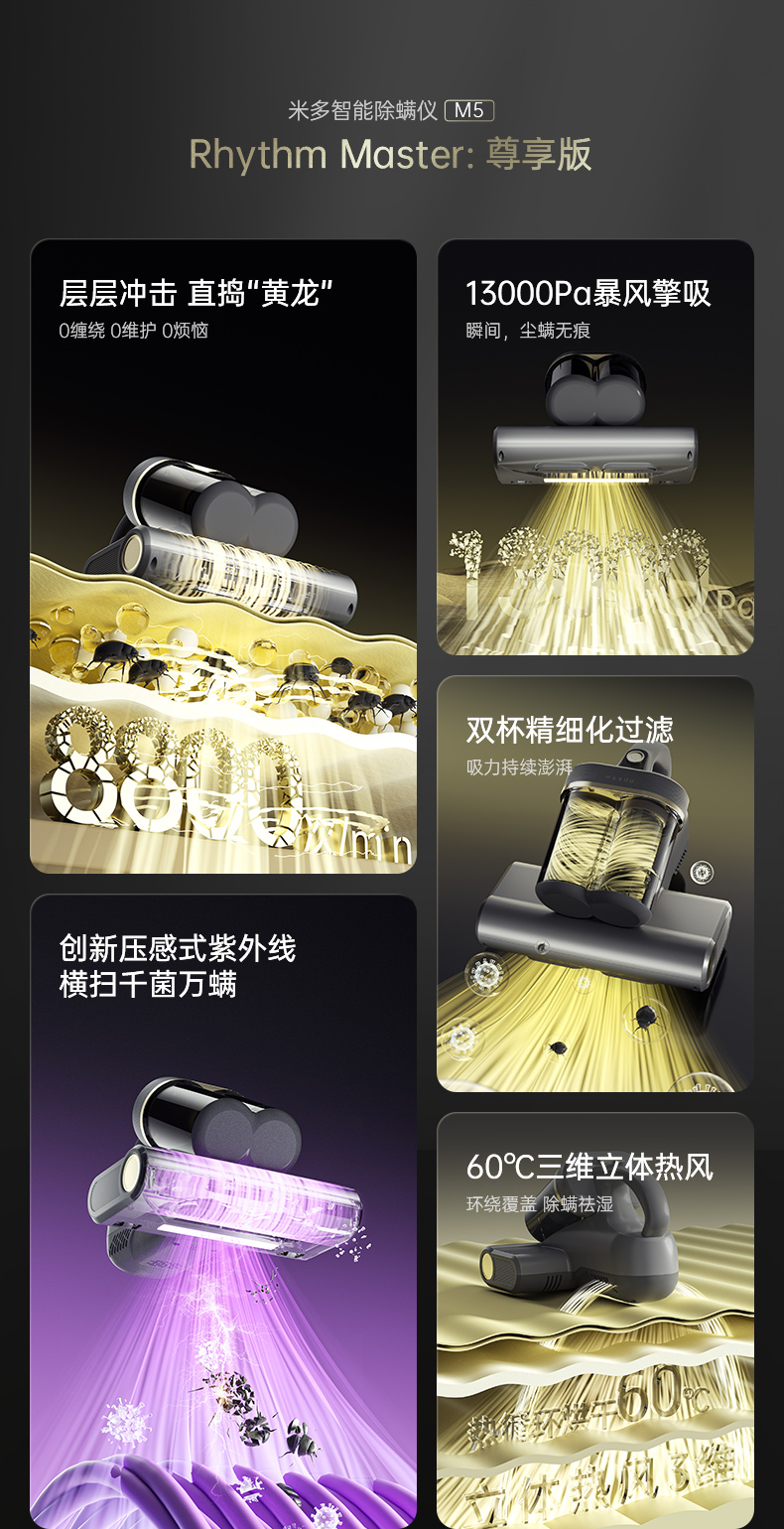 米多除螨仪M5 13000pa吸力 立体热风除湿