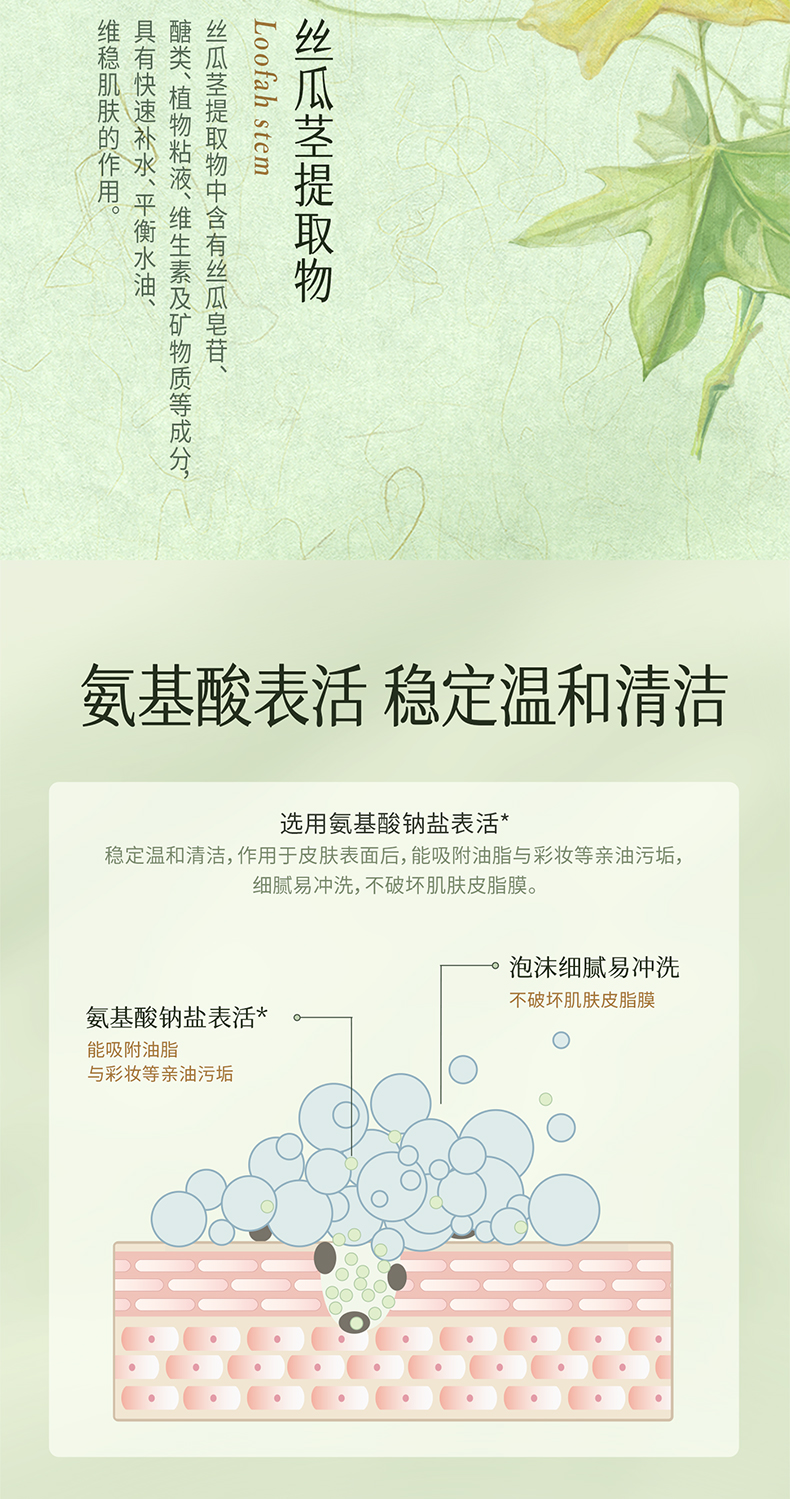 【2瓶32.9元】千纤草丝瓜氨基酸洁面慕斯250ml