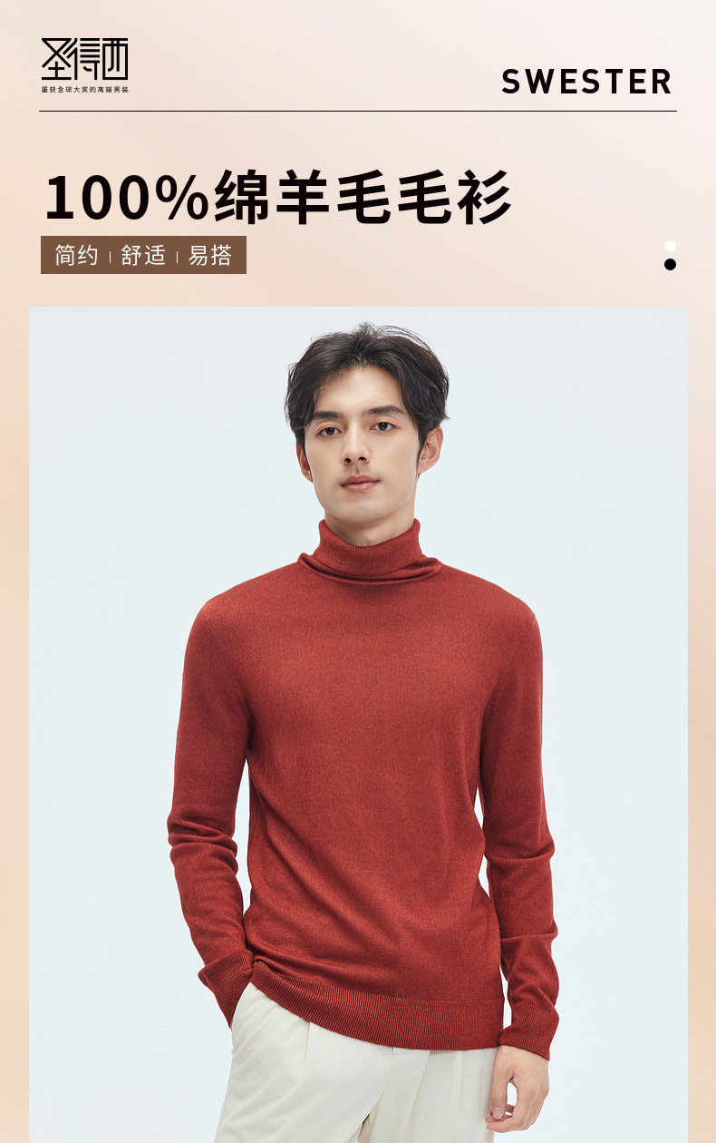 【门店同款&100%绵羊毛】圣得西2025年冬季男士针织衫高领毛衫
