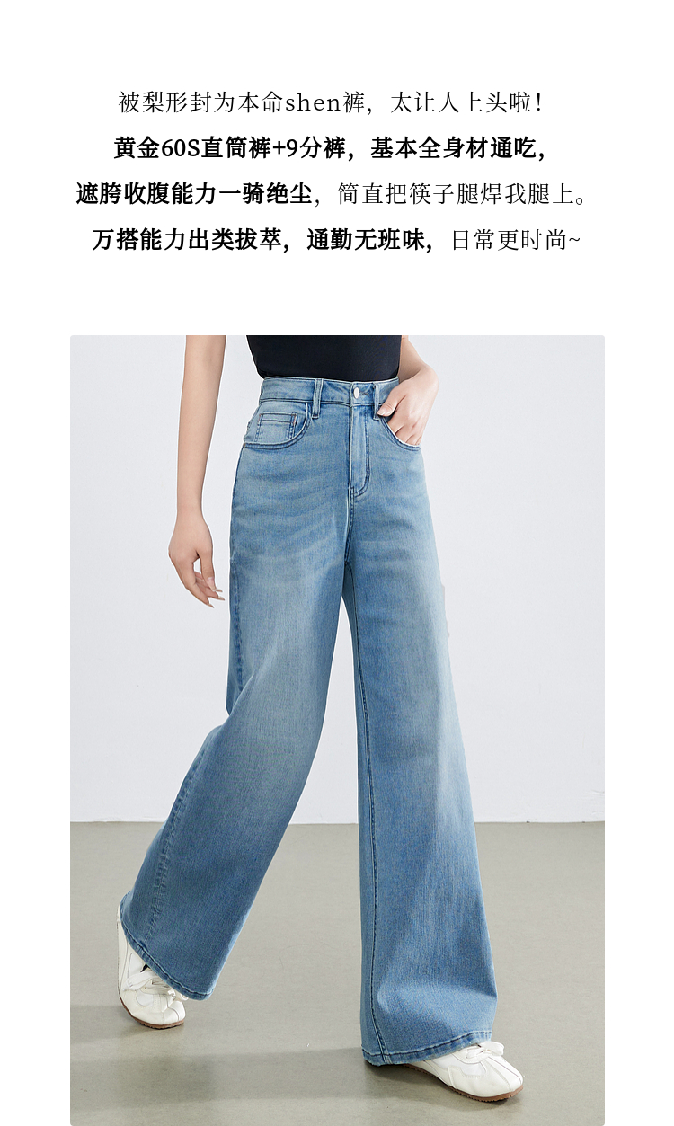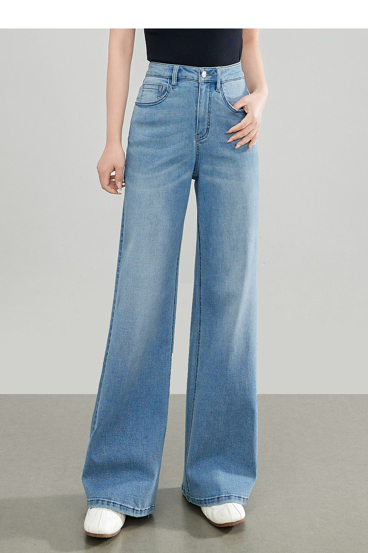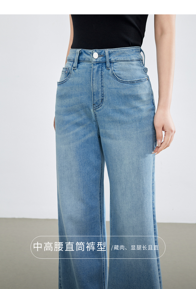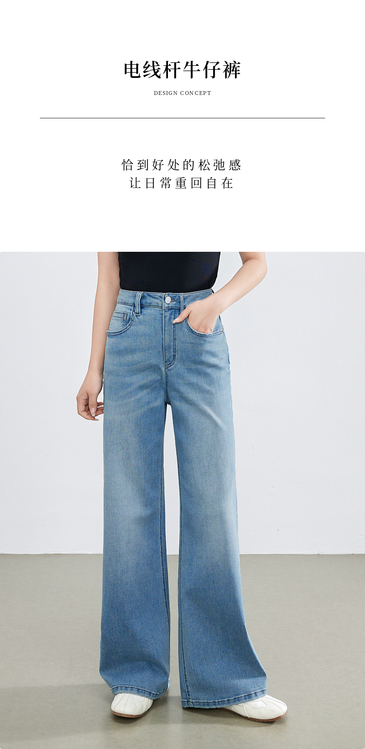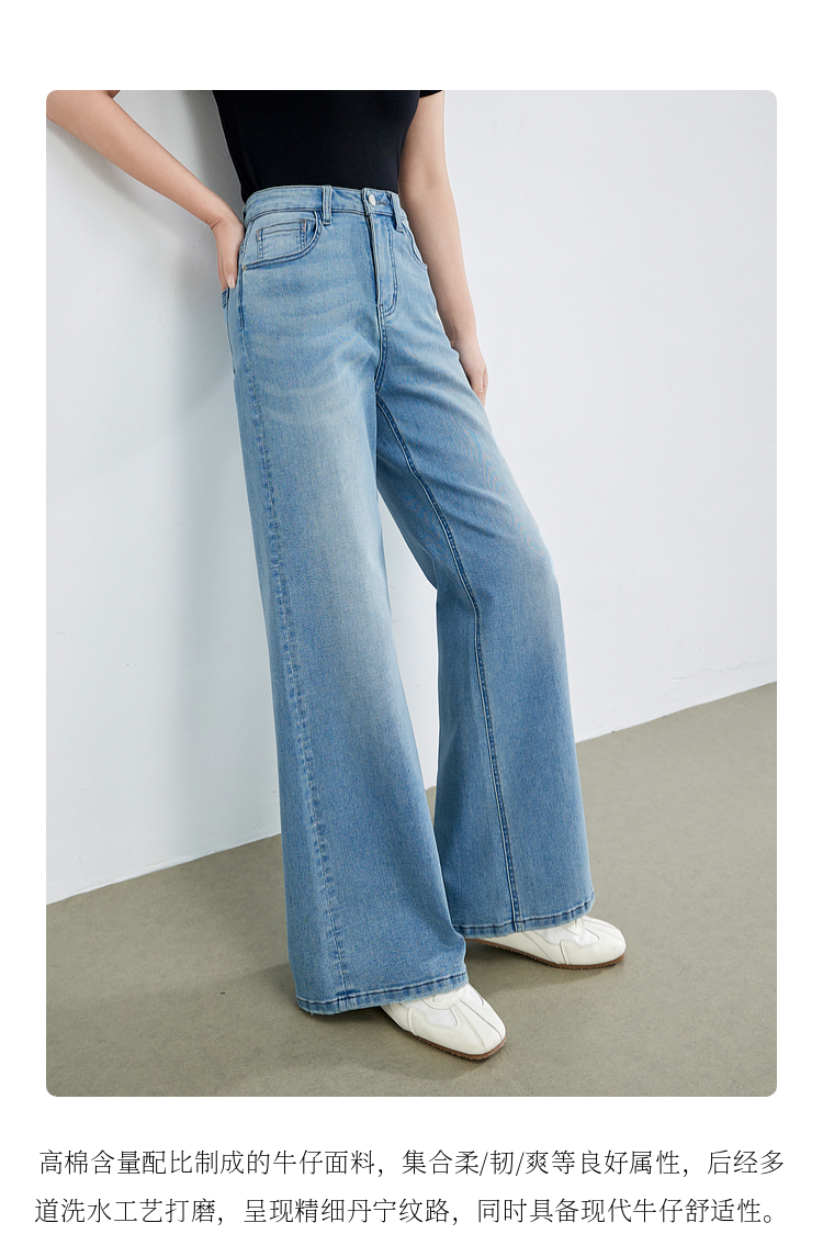 【五折购】熙世界牛仔裤阔腿宽松2025夏季薄款通勤高腰显瘦休闲直筒长裤子