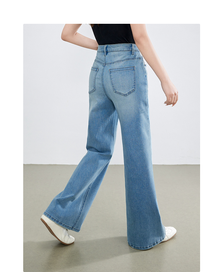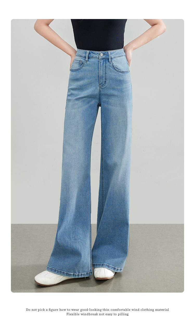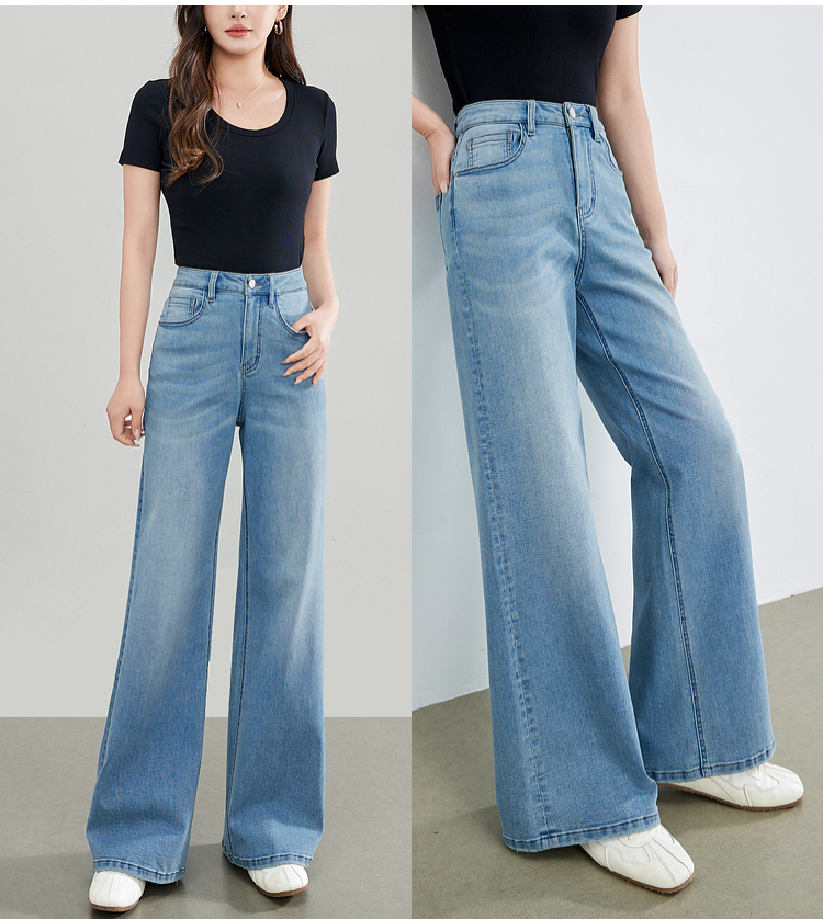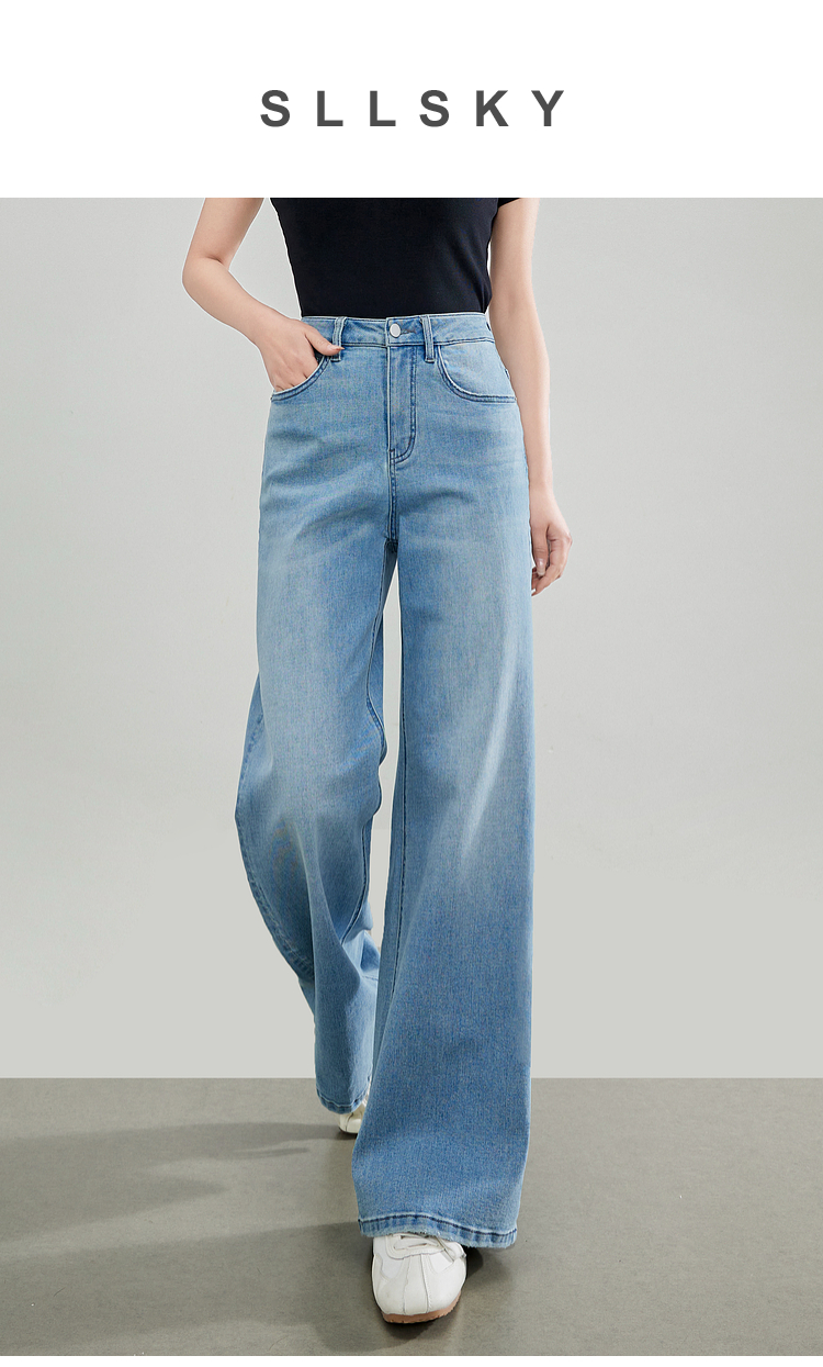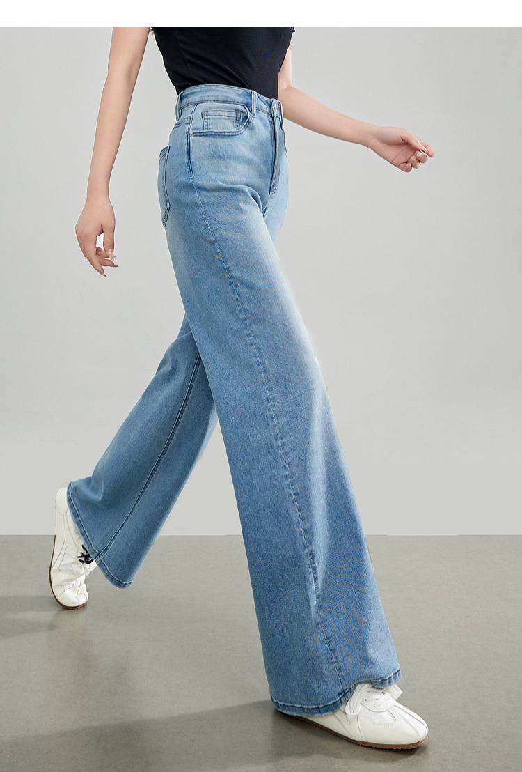 【五折购】熙世界牛仔裤阔腿宽松2025夏季薄款通勤高腰显瘦休闲直筒长裤子