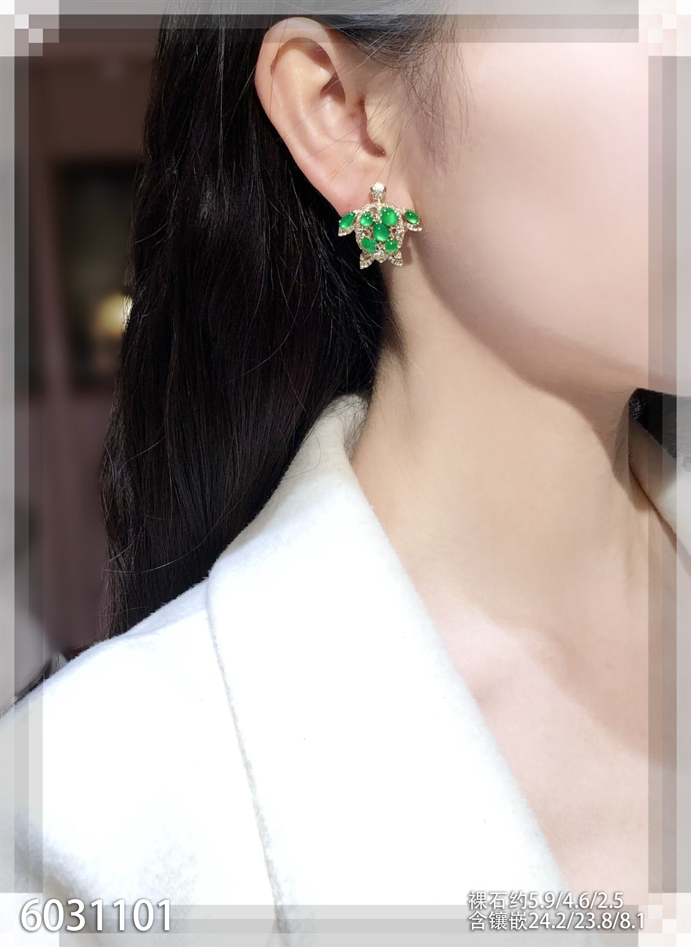 39-1212111,玻璃木那阳艳绿福豆耳钉,8999