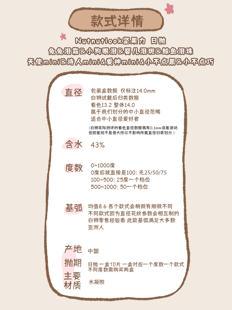 坚果力NUTNUTLOOK 爱神mini系列 爱神mini&天使mini&诗人mini&小不点黑&小不点巧 14.0mm中小直径 日抛十片装